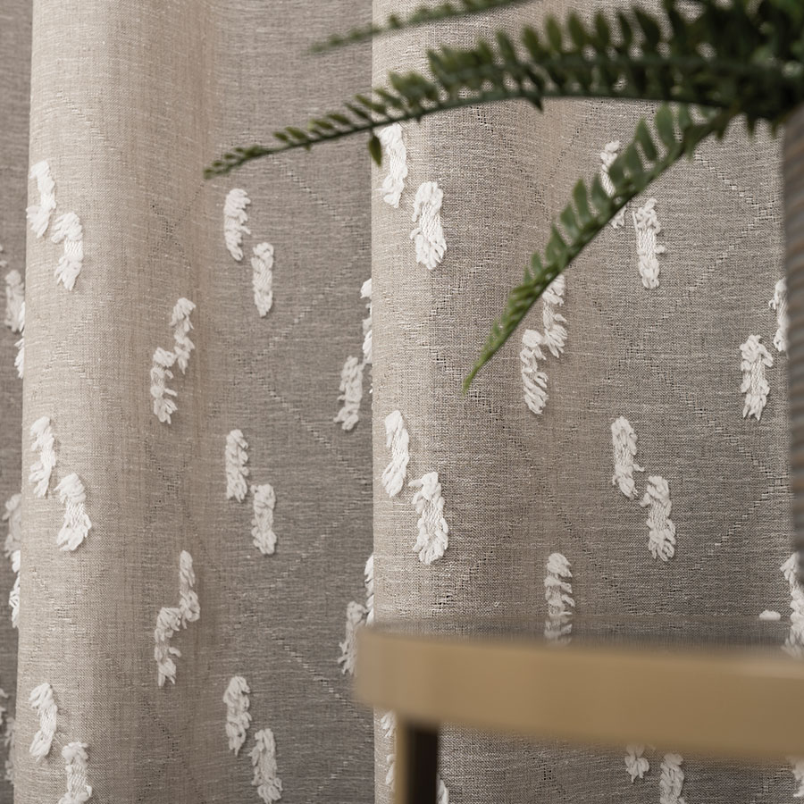 Lekka tkanina pięknie przepuszcza światło, tworząc przyjemną, rozświetloną przestrzeń, a jednocześnie zapewnia delikatną prywatność. Dzięki wysokości 300 cm firana doskonale sprawdzi się w wysokich pomieszczeniach oraz przy aranżacjach okien od sufitu do podłogi.