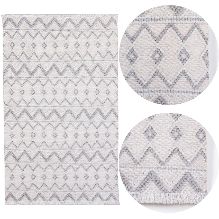 Naturalny splot i mieszanka materiałów – połączenie bawełny i poliestru gwarantuje trwałość, odporność na ścieranie oraz efekt naturalnego tkania. Struktura dywanu imituje ręcznie wykonane plecionki, podkreślając jego wyjątkowy wygląd i nadając wnętrzu przytulnego charakteru.