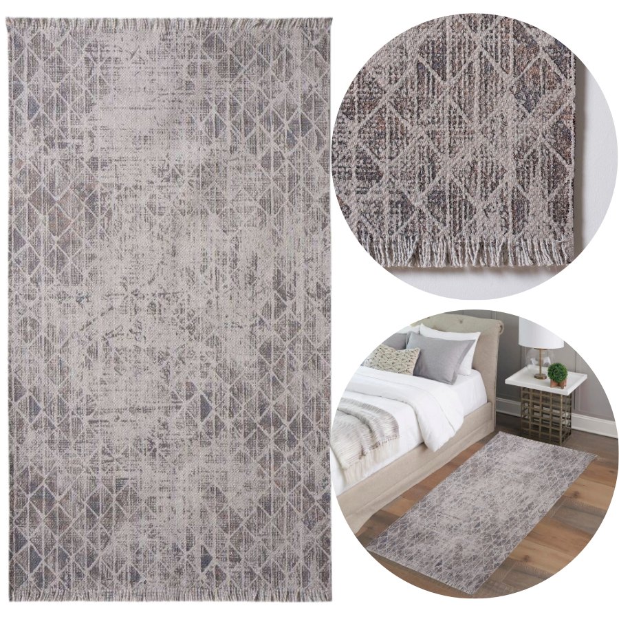 Dywan dekoracyjny z antypoślizgową powłoką to połączenie stylu i funkcjonalności, które doskonale sprawdzi się w każdym wnętrzu. Jego naturalny splot, uzyskany dzięki starannie dobranej mieszance bawełny i poliestru, nadaje mu elegancki wygląd, subtelną fakturę oraz wyjątkową trwałość. Struktura tkaniny inspirowana jest naturalnym włóknem, co nadaje dywanowi unikalny, ręcznie tkany charakter, idealnie komponujący się z różnorodnymi aranżacjami – od klasycznych po nowoczesne.