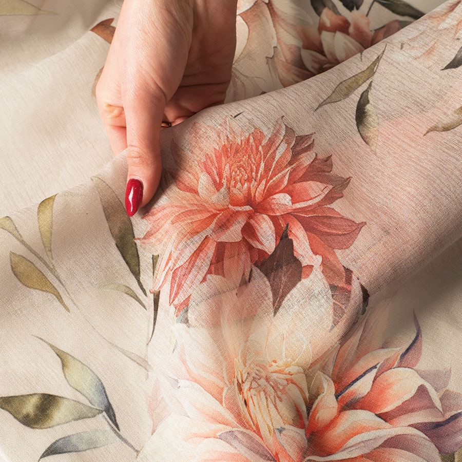 Firana z ołowianką, wykonana z etaminy o wiosennym wzorze i nadruku „gradientowego”, pięknie się układają, tworząc wyjątkową atmosferę w Twoim wnętrzu. Ołowianka nadaje firanie elegancki opad, jednocześnie gwarantując, że materiał będzie pięknie się prezentować.