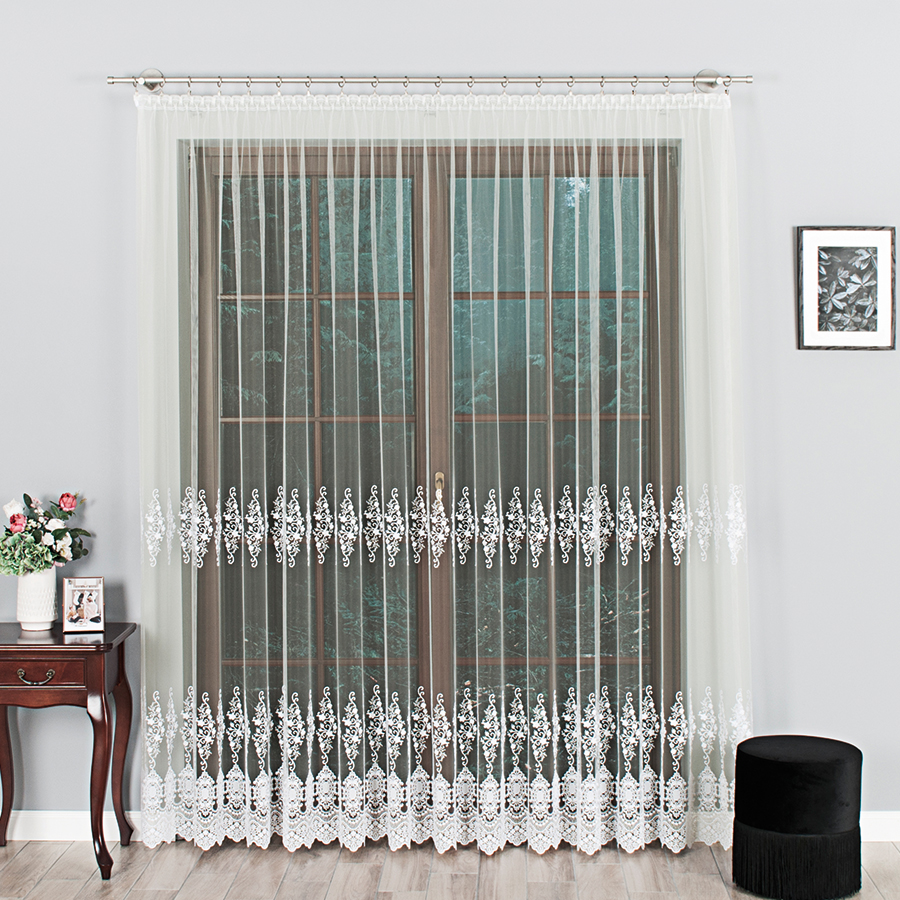 FIRANA HAFTOWANA ZE WZOREM 250cm kolor kremowy