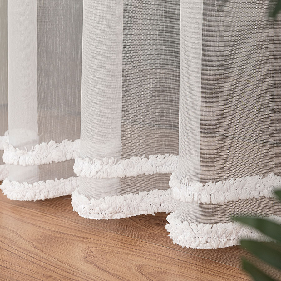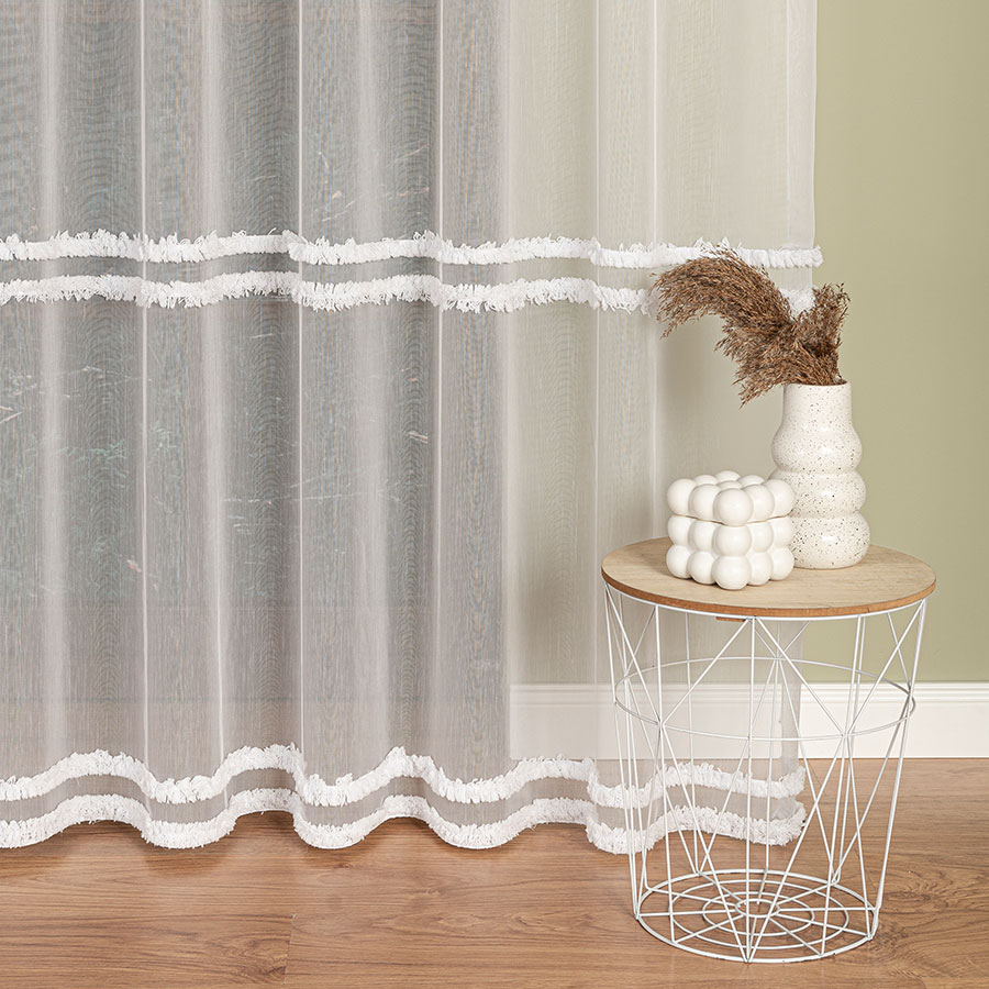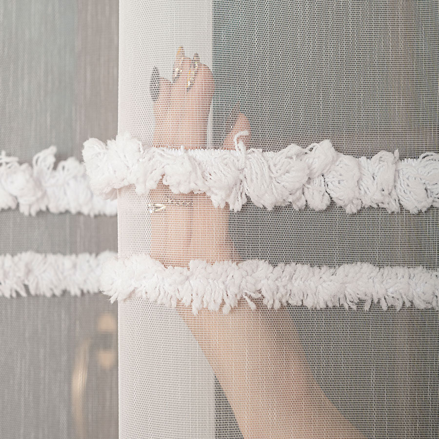 - Strukturalna głębia – dzięki wypukłości haftu firana zyskuje trójwymiarowy efekt, który pięknie prezentuje się w świetle dziennym.
