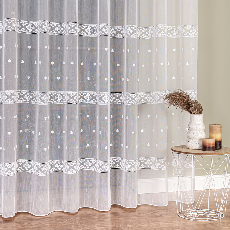 - Łatwość w pielęgnacji – firany haftowane są lekkie, łatwe do prania i nie wymagają intensywnego prasowania.