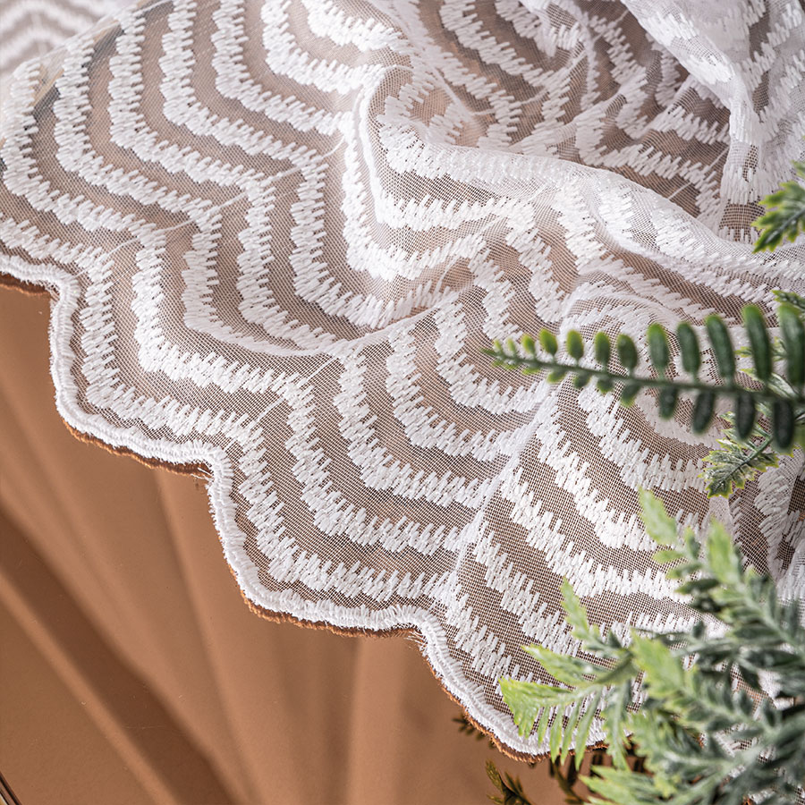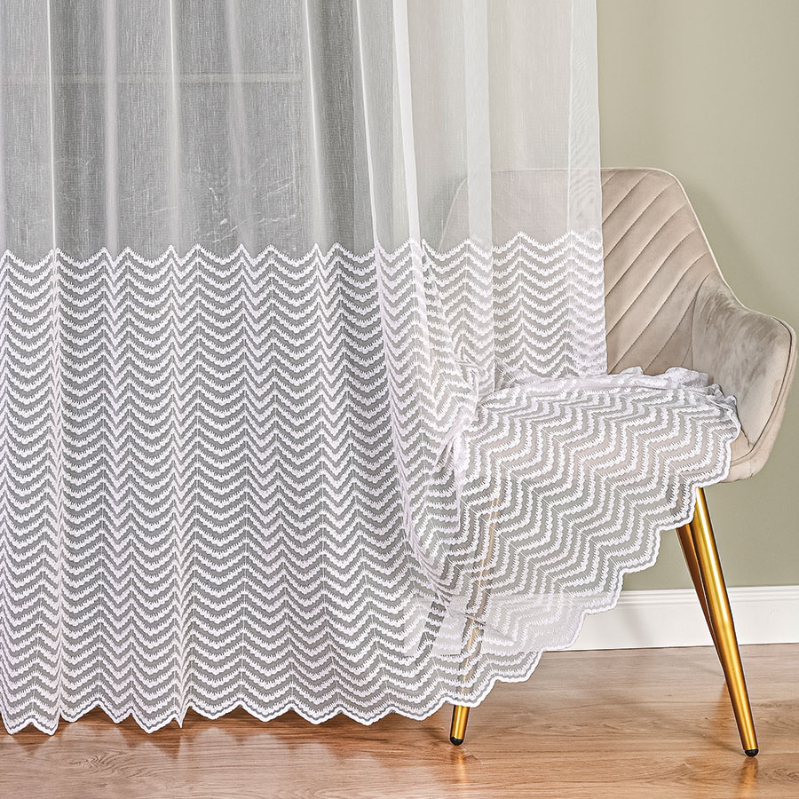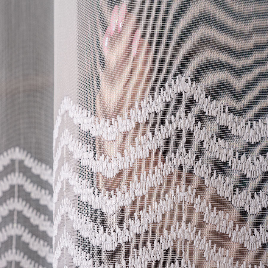 • Strukturalna głębia – dzięki wypukłości haftu firana zyskuje trójwymiarowy efekt, który pięknie prezentuje się w świetle dziennym.