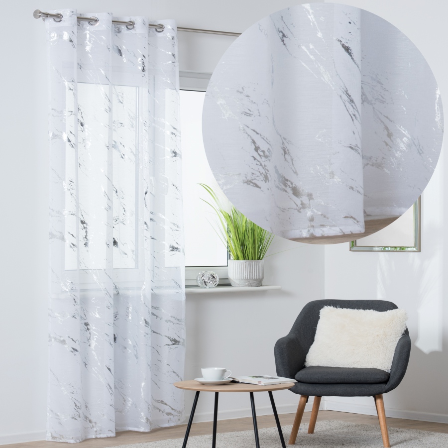 Nowoczesny i niepowtarzalny wzór firany idealnie sprawdzi się w sypialni, salonie oraz jadalni.