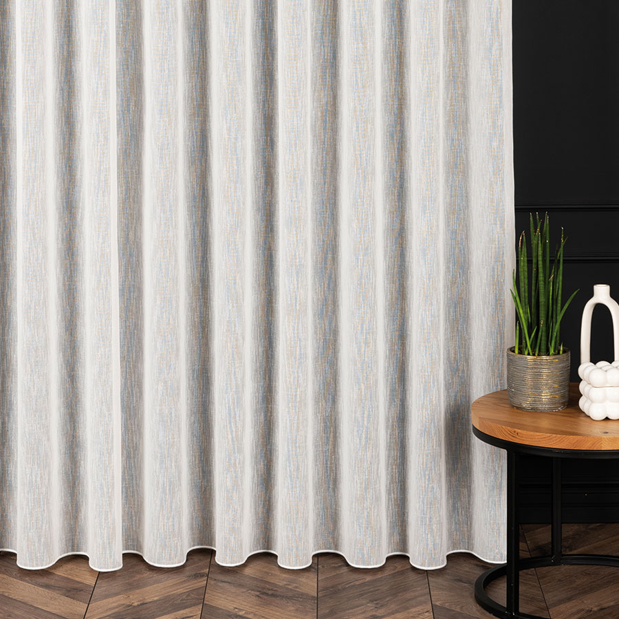 Firana w stylu Natural Look, która łączy prostotę z subtelną elegancją. Firana wykonana z wysokiej jakości materiału, doskonale wpisuje się w trend naturalnych i minimalistycznych aranżacji wnętrz. Jej delikatna faktura i neutralny kolor wprowadzą do Twojego domu ciepło oraz przytulność. Firana jest wykończona ołowianką, co zapewnia idealne układanie się materiału oraz eleganckie opadanie. Dzięki temu, firana tworzy harmonijne, równomierne fałdy, dodając pomieszczeniu lekkości i naturalnego uroku.