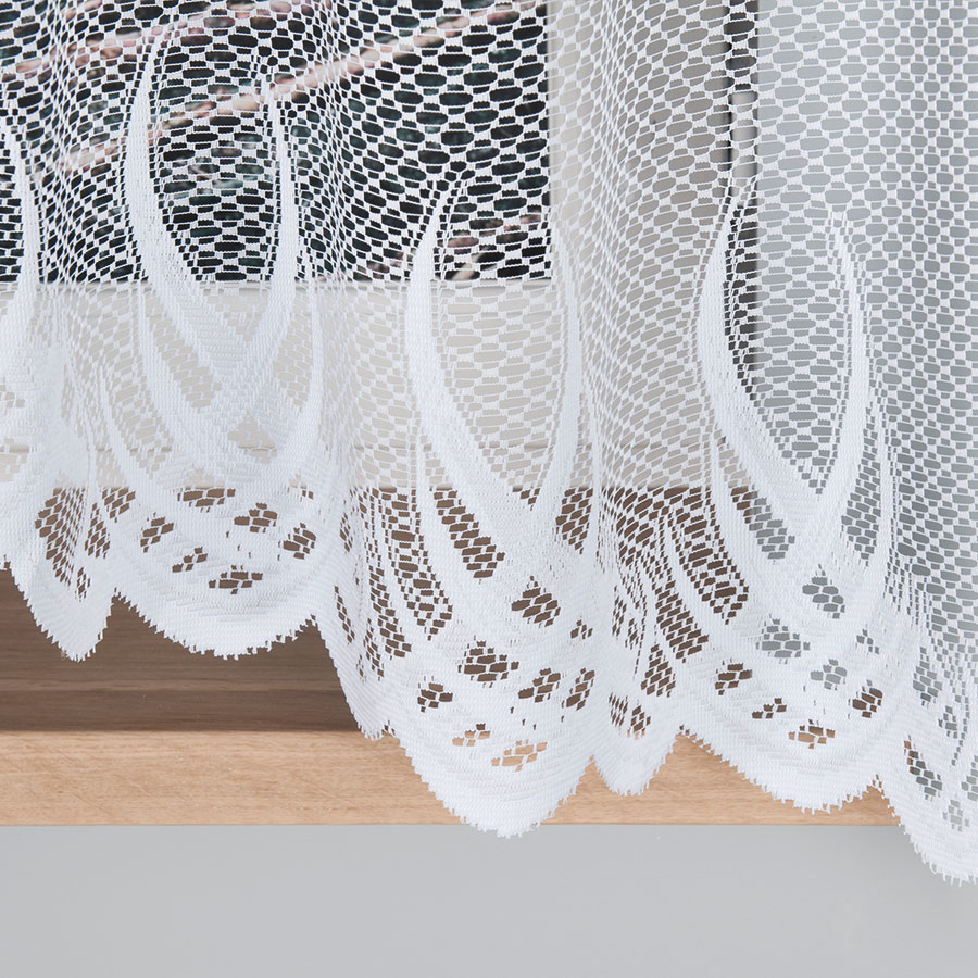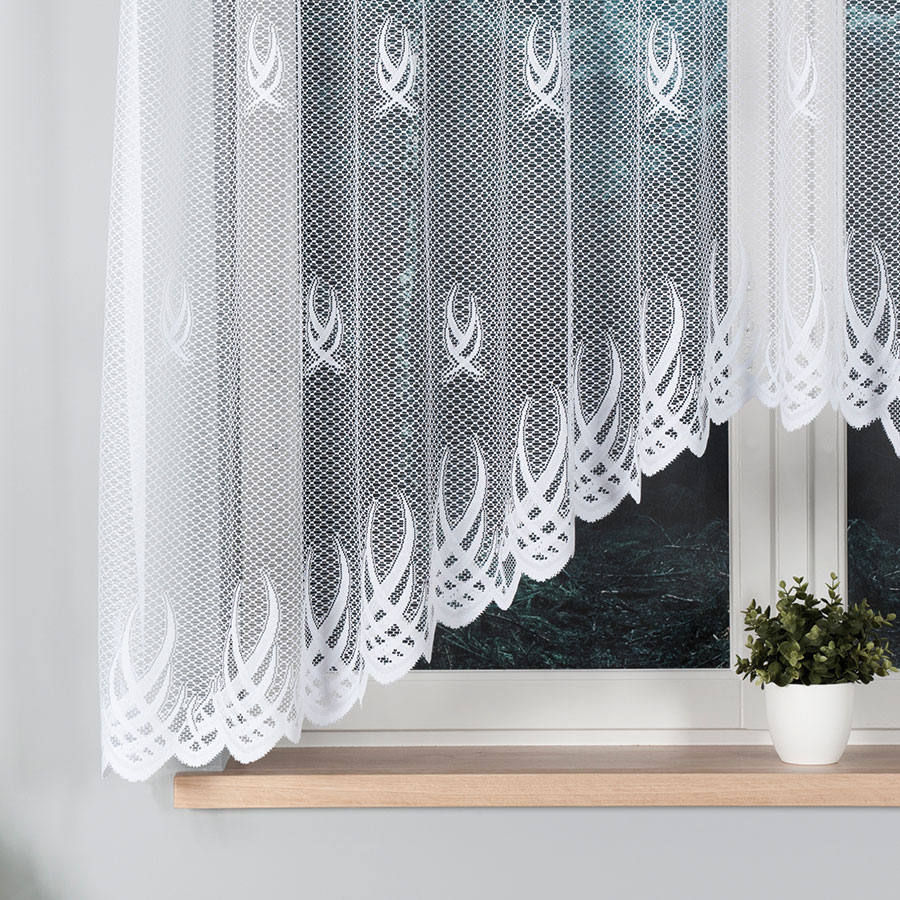 Firanka o niezwykle modnym wzorze z akcentem kwiatowym wyróżnia się na tle standardowych firan. Firanki żakardowe są najbardziej popularnym typem firan w naszym kraju, charakteryzują się wyjątkowo niską ceną oraz gamą niepowtarzalnych i licznych wzorów. Żakard jest tkaniną niezwykle mocną i trwałą dzięki czemu długo posłuży każdemu użytkownikowi. Nie wymaga specjalnego traktowania w czasie prania oraz prasowania, wystarczy wyprać w proszku lub płynie do białych tkanin i zawiesić na mokro. Klasyczny wzór firany pasuje do każdego pomieszczenia kuchni, sypialni, salonu czy jadalni. Firanka nie posiada taśmy marszczącej co ułatwia jej dowolne upięcie oraz ułożenie na każdym typie karnisza.