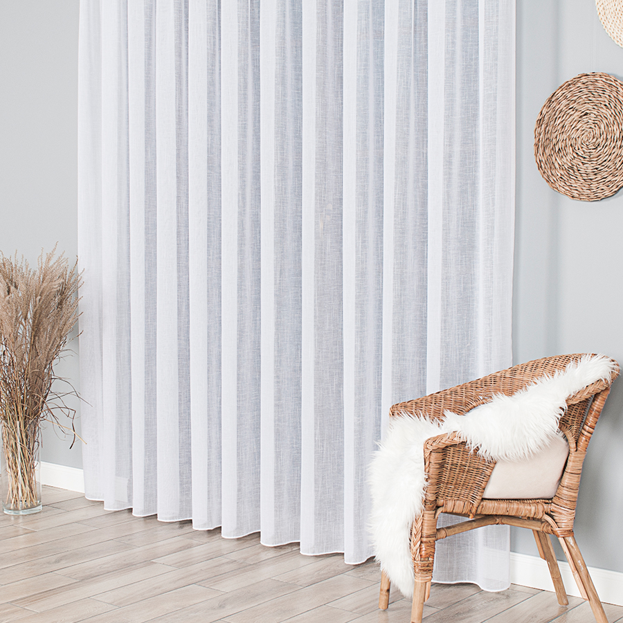 Firana sprawdzi się zarówno w wysokich pomieszczeniach, jak i tam, gdzie dekoracja ma prezentować się od sufitu aż do podłogi.