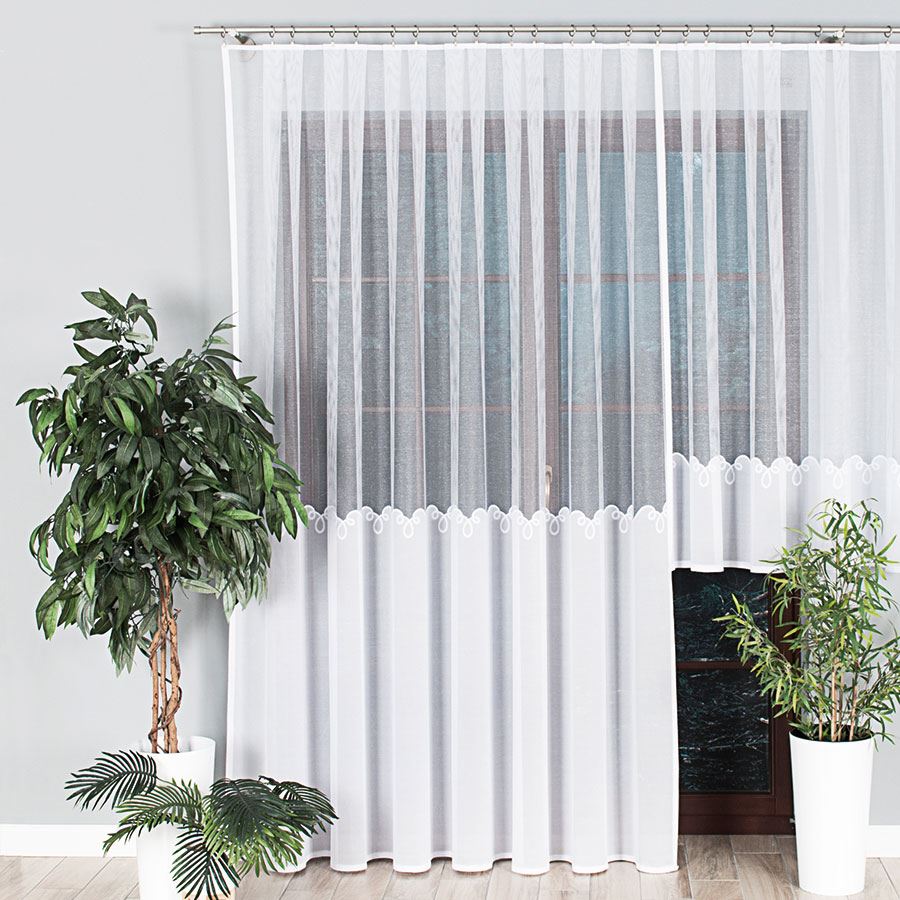 Klasyczny wzór firany pasuje do każdego pomieszczenia kuchni, sypialni, salonu czy jadalni.
