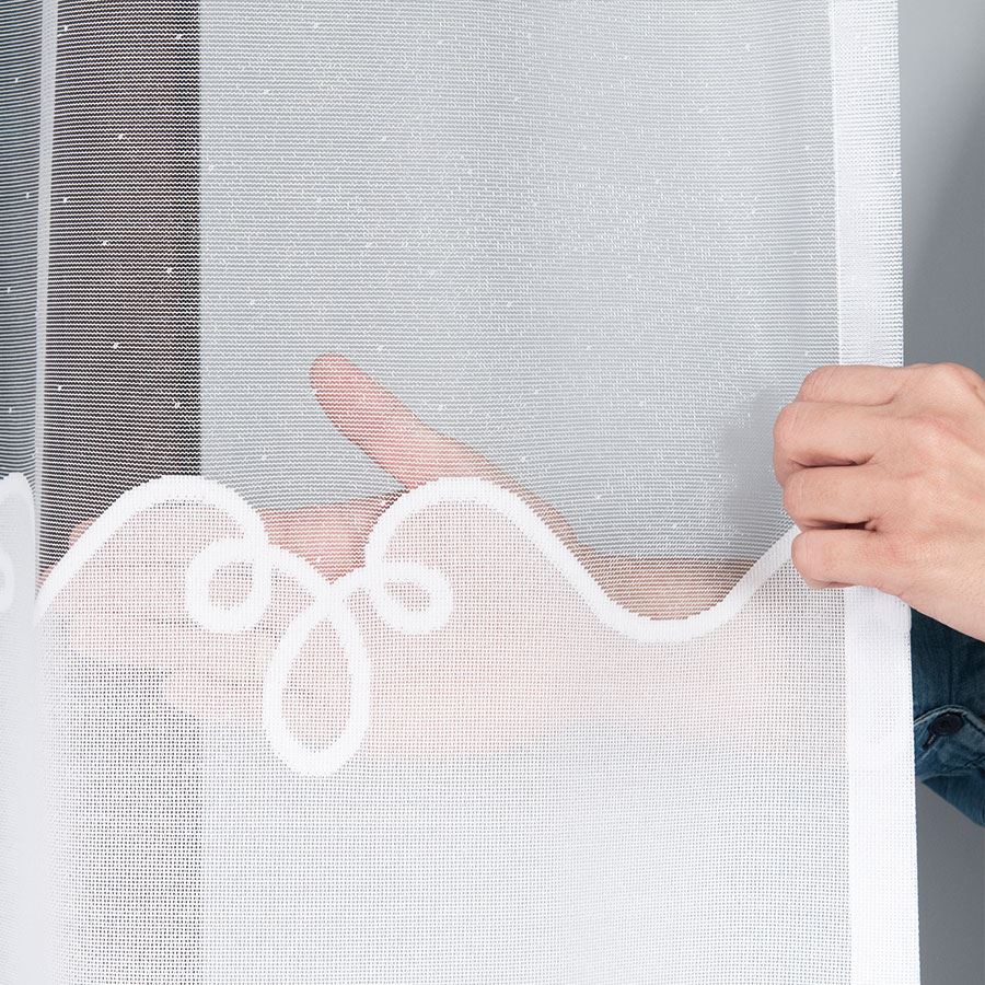 Firana nie posiada taśmy marszczącej co pozwala na jej dowolne upięcie oraz ułożenie na każdym typie karnisza.