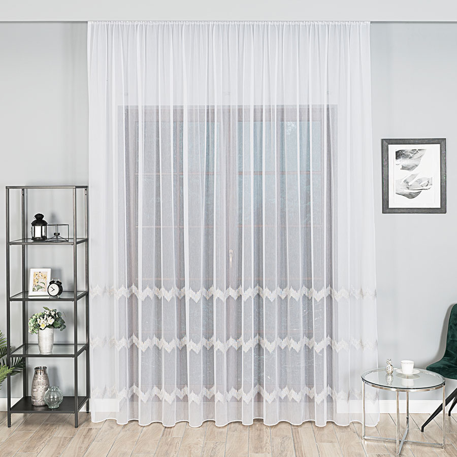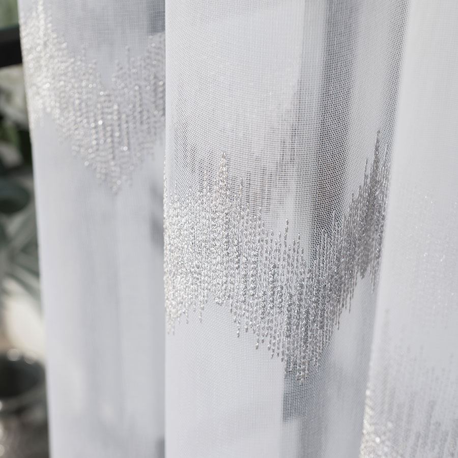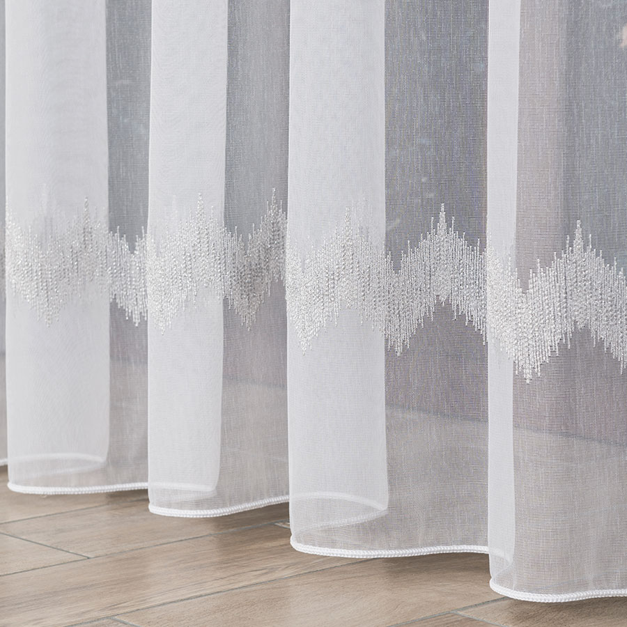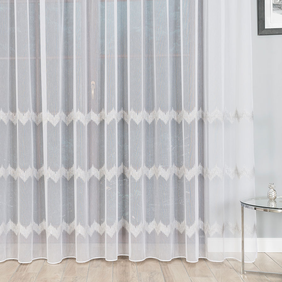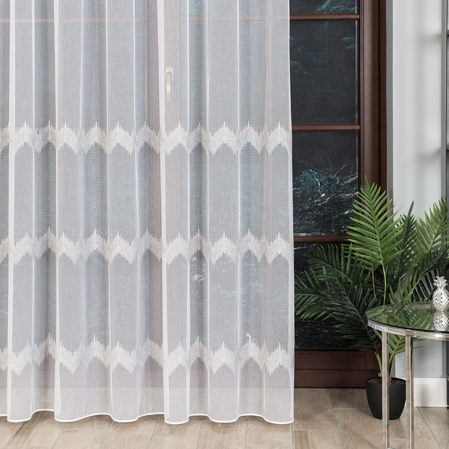 Firanka haftowana z ołowianką 280cm kolor biały z szarym i srebrnym