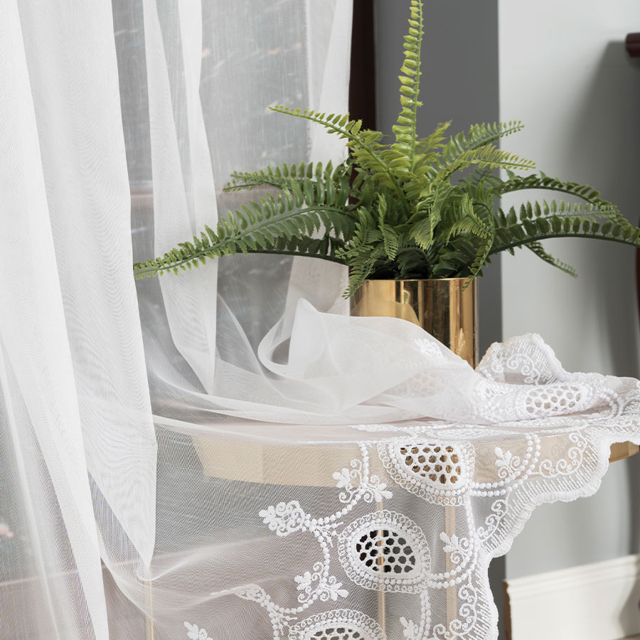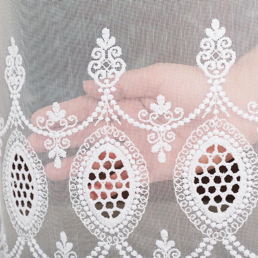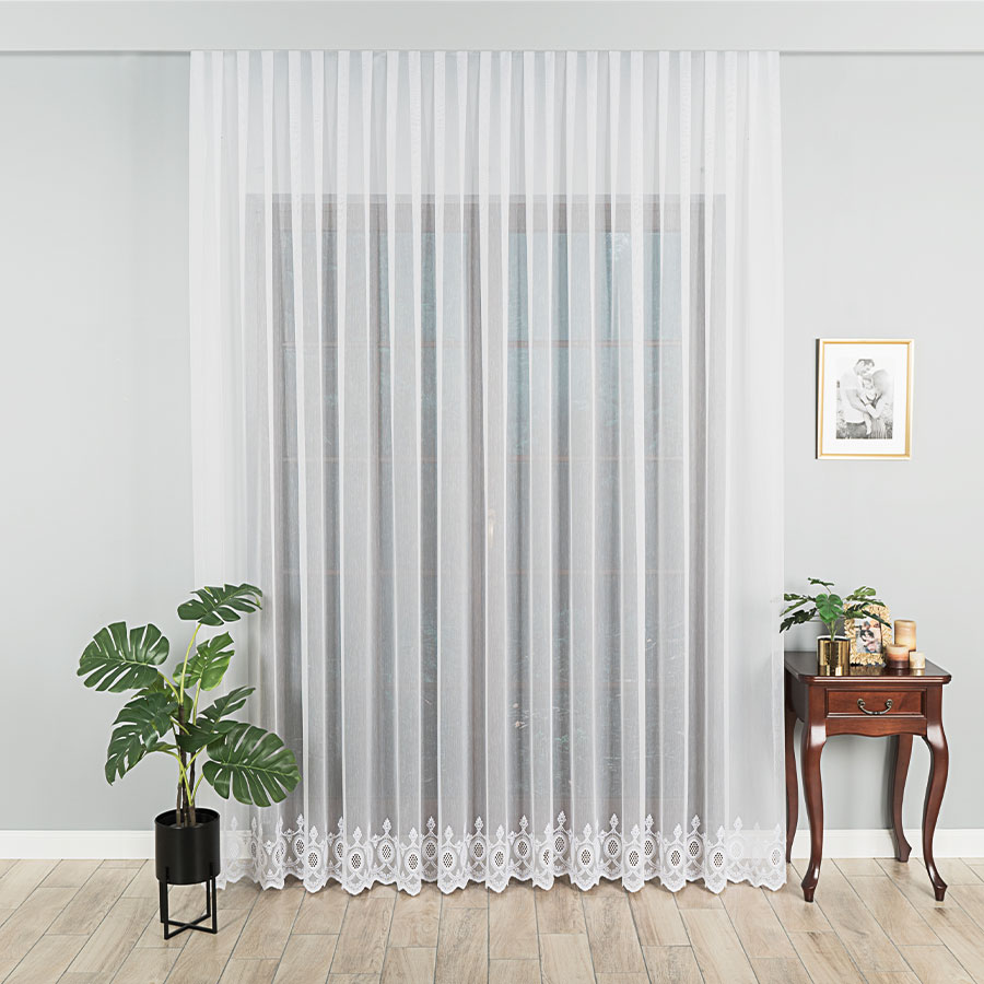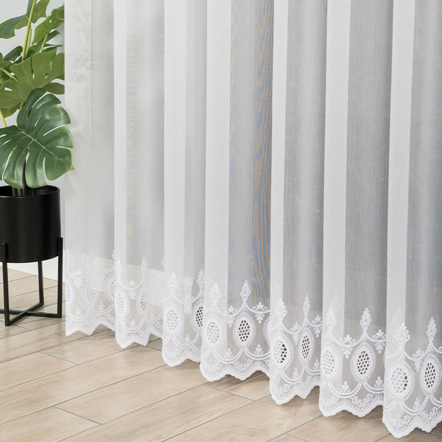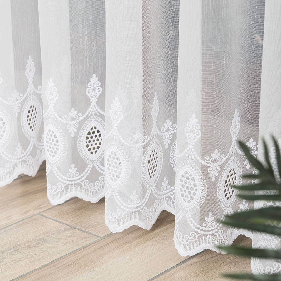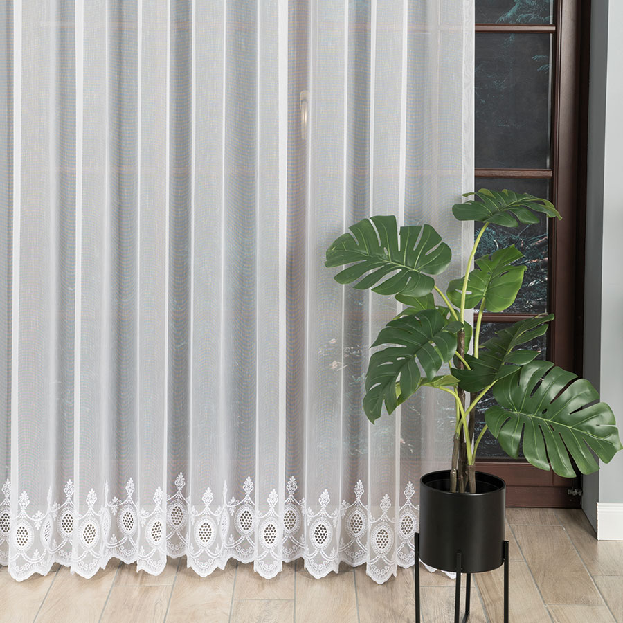 Firanka haftowana z eleganckim wzorem ornamentowym. Ta piękna firanka zachwyca bogactwem detali i finezją wykonania, co sprawia, że jest doskonałą ozdobą każdego wnętrza. Wzór ornamentowy, zdobiący tę firankę, jest niezwykle misterny i wyrafinowany. Składa się z delikatnych linii i zdobień, które tworzą subtelny i stylowy motyw. Ornamenty te dodają wnętrzu wyjątkowego charakteru i elegancji, podkreślając jego wyjątkowość. Firanka haftowana z ornamentowym wzorem to idealny wybór dla osób ceniących sobie luksus i wysoką jakość wykonania. Doskonale sprawdzi się w salonie, sypialni lub jadalni, nadając pomieszczeniu wyjątkowego uroku i stylu.