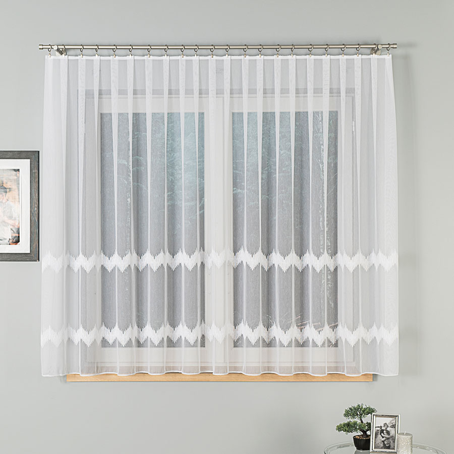 Firanka haftowana ze wzorem i ołowianką 160cm kolor biały z błyskiem