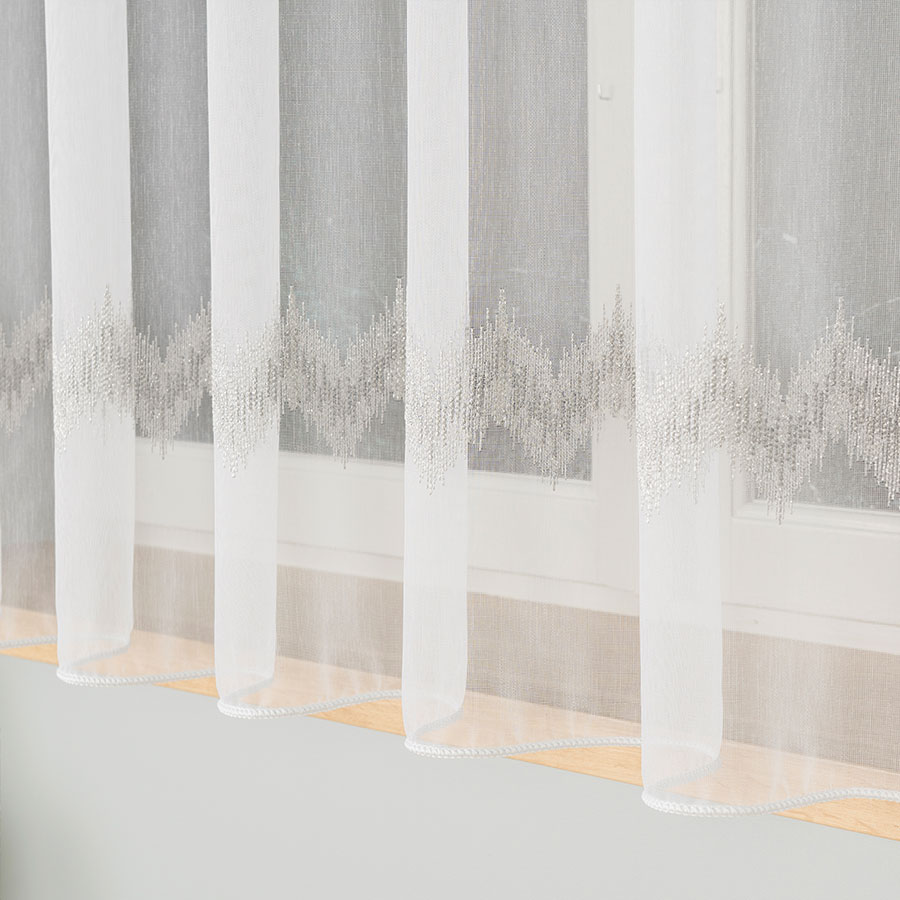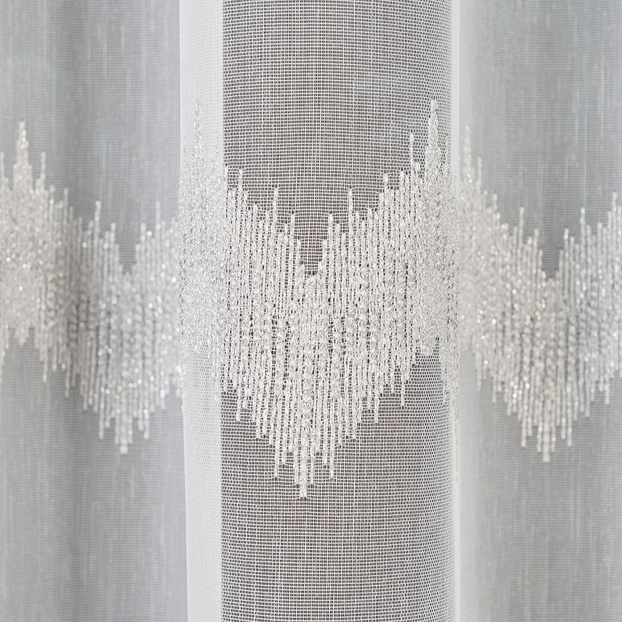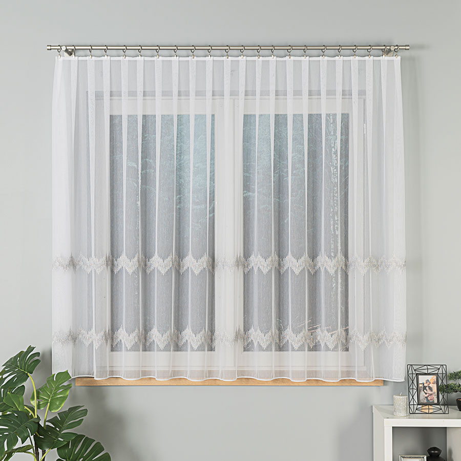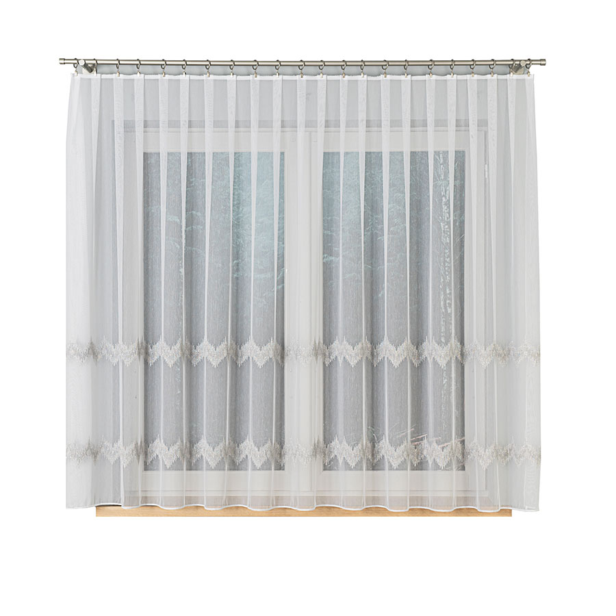 Firanka haftowana ze wzorem i ołowianką 160cm kolor biały z szarym i srebrnym