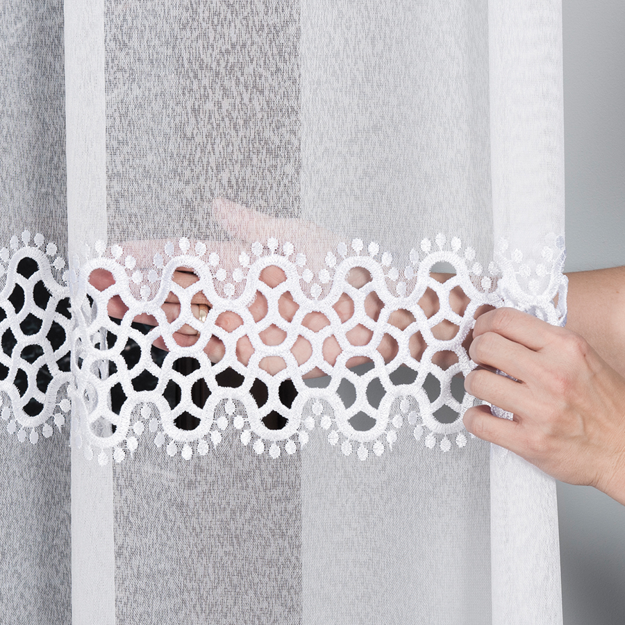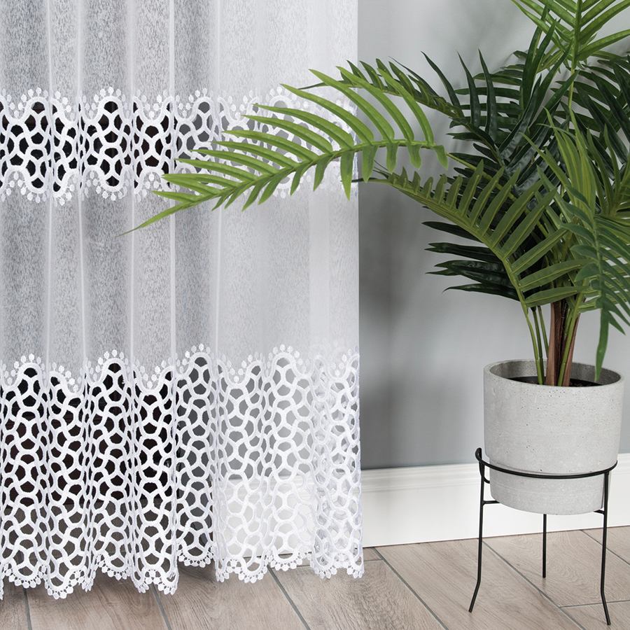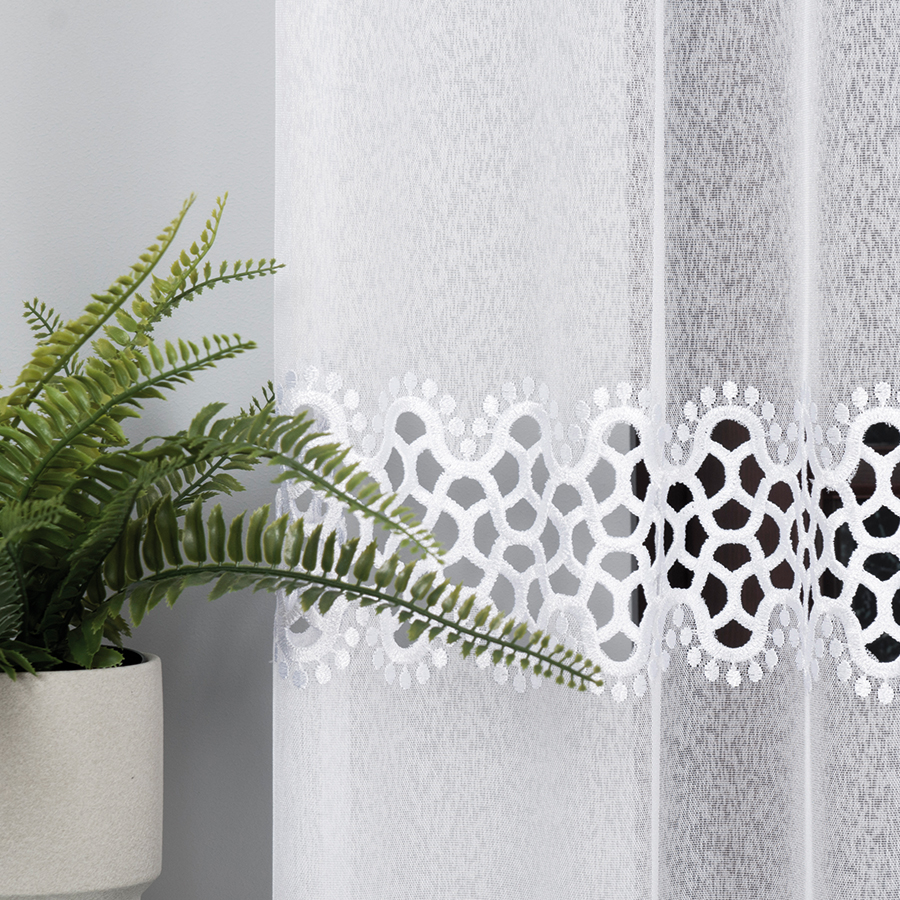 Firanka wykończona gipiurą na markizecie 280cm kolor biały