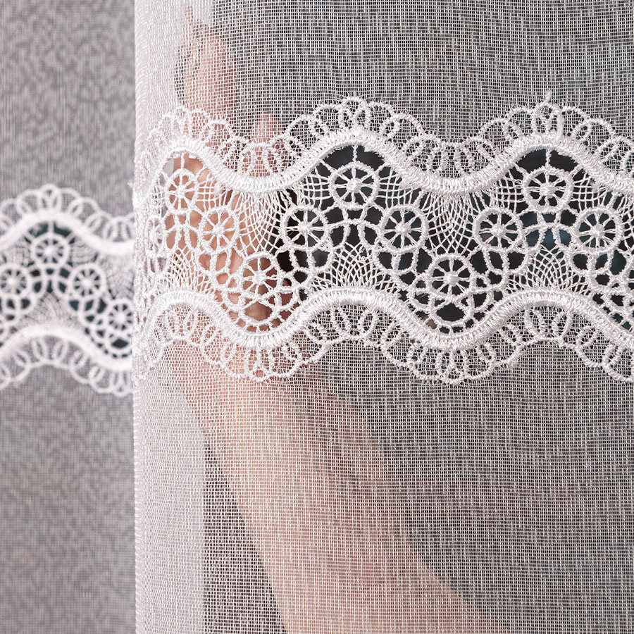 Firana z gipiurą doskonale komponuje się zarówno z klasycznymi, jak i nowoczesnymi aranżacjami wnętrz — idealna do salonu, sypialni, jadalni czy pokoju dziennego.
