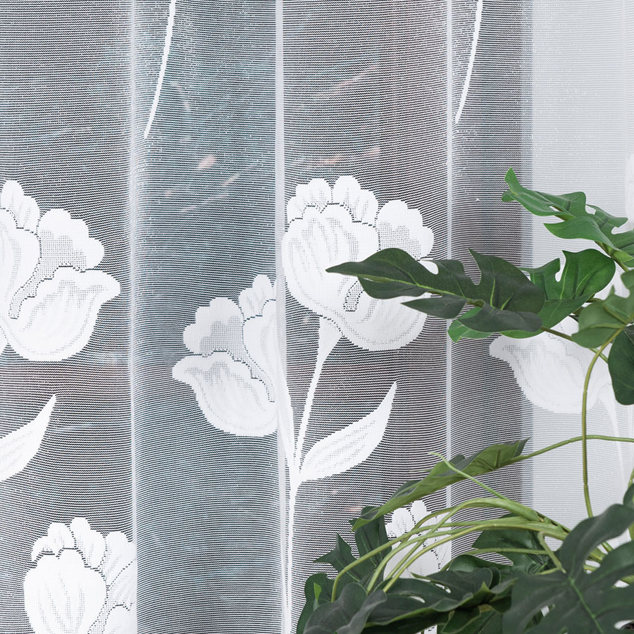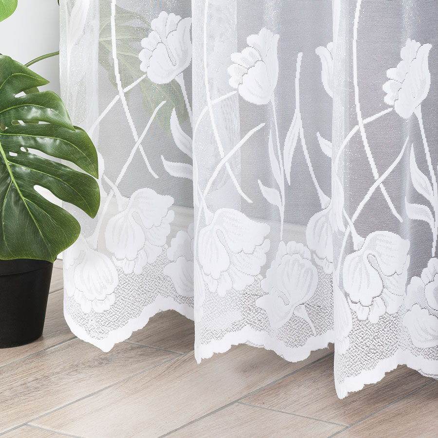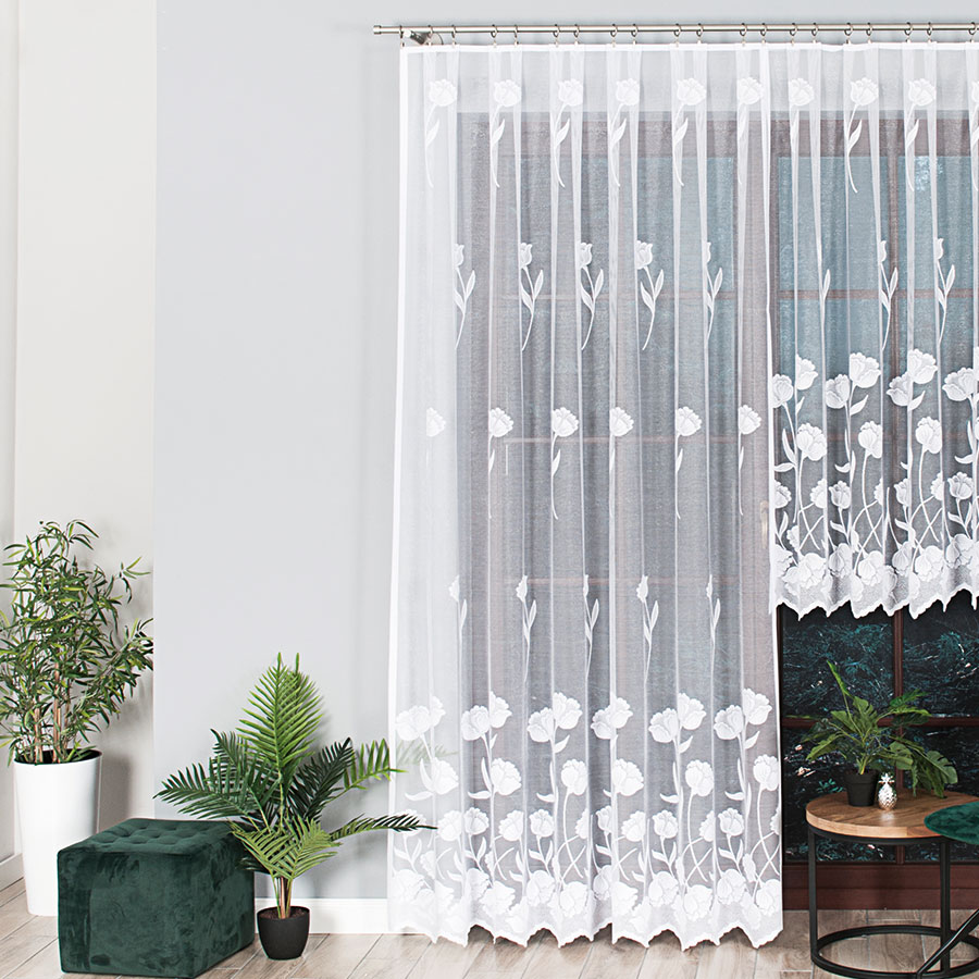 Klasyczny wzór firany pasuje do każdego pomieszczenia kuchni, sypialni, salonu czy jadalni.