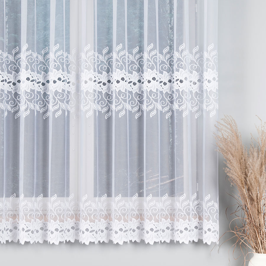 Firanka żakardowa z eleganckim, klasycznym wzorem to wyrafinowany dodatek do każdego wnętrza. Wykonana z najwyższej jakości żakardu, ta firanka zachwyca precyzją wykonania i tradycyjnym wzorem, który dodaje pomieszczeniu klasy i szyku. Elegancki motyw doskonale komponuje się z różnymi stylami aranżacyjnymi, nadając wnętrzu wyjątkowej elegancji i uroku. Klasyczny wzór firanki jest ponadczasowy, co sprawia, że będzie ona doskonałym wyborem do wielu aranżacji wnętrz, zarówno nowoczesnych, jak i bardziej tradycyjnych. Zawieś tę piękną firankę w swoim domu, aby podkreślić jego wyjątkowy charakter i stworzyć atmosferę luksusu i dobrego smaku.