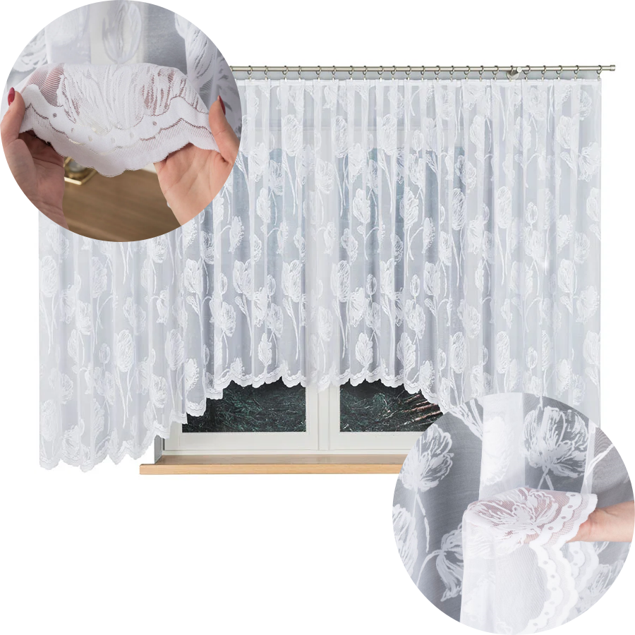 Firanka żakardowa z pięknym, oryginalnym wzorem to doskonały sposób na dodanie unikalnego charakteru i uroku Twojemu wnętrzu. Żakard to tkanina o gęstym splocie, co nadaje jej wyjątkową fakturę, a piękny, oryginalny wzór dodaje jej wyrazistego charakteru. Dzięki tej firance Twoje wnętrze zyska niepowtarzalny akcent dekoracyjny. Oryginalny wzór firanki wyróżni się spośród innych, tworząc przy tym efektowny element ozdobny dla okna.