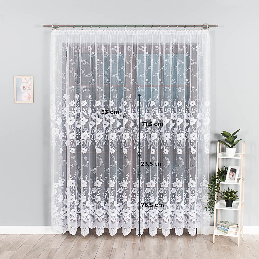 Firanka żakardowa w kwiaty 200cm biała