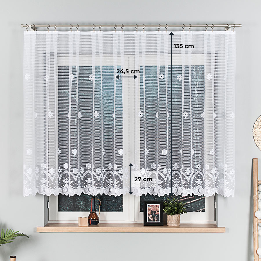 Jej modny i niepowtarzalny wzór sprawi, że wnętrze nabierze charakteru i wyjątkowego wyglądu. Dołożyliśmy starań, aby staranne wykonanie i uniwersalne zdobienie naszej firanki zachwyciło wszystkich Twoich domowników i gości.