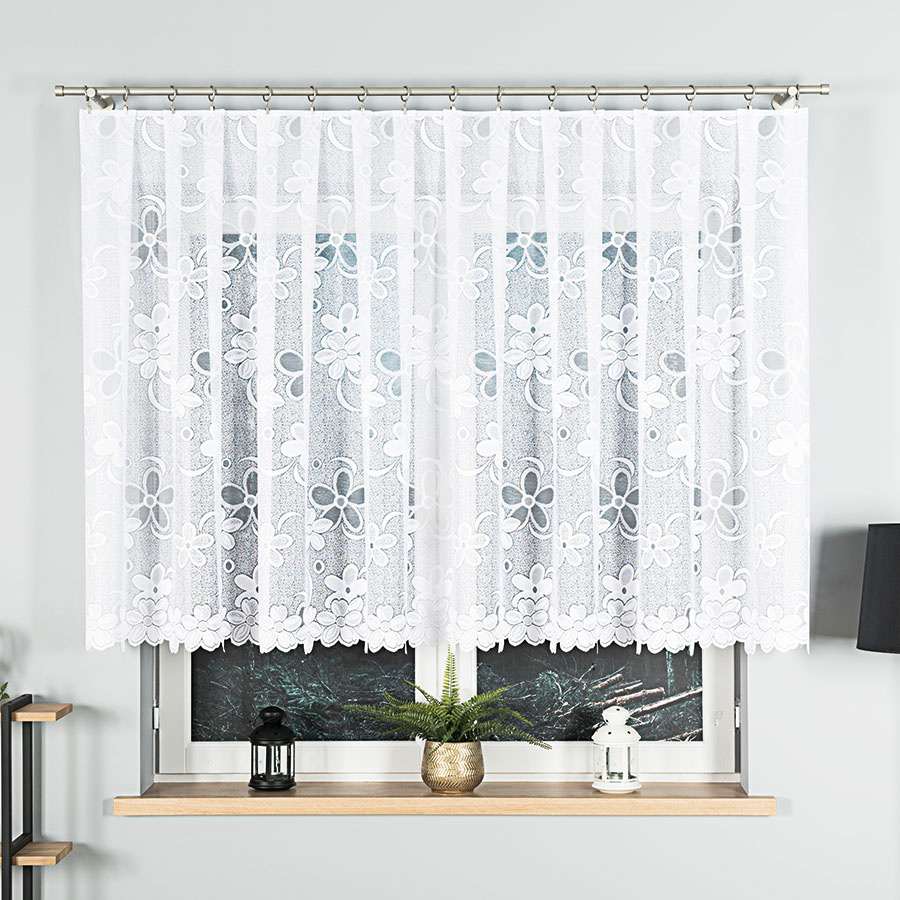 Firanka żakardowa ze wzorem 130cm biała