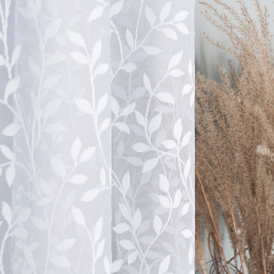 FIARAN ŻAKARD WZÓR BOTANICZNY GAŁĄZKI 150cm biała