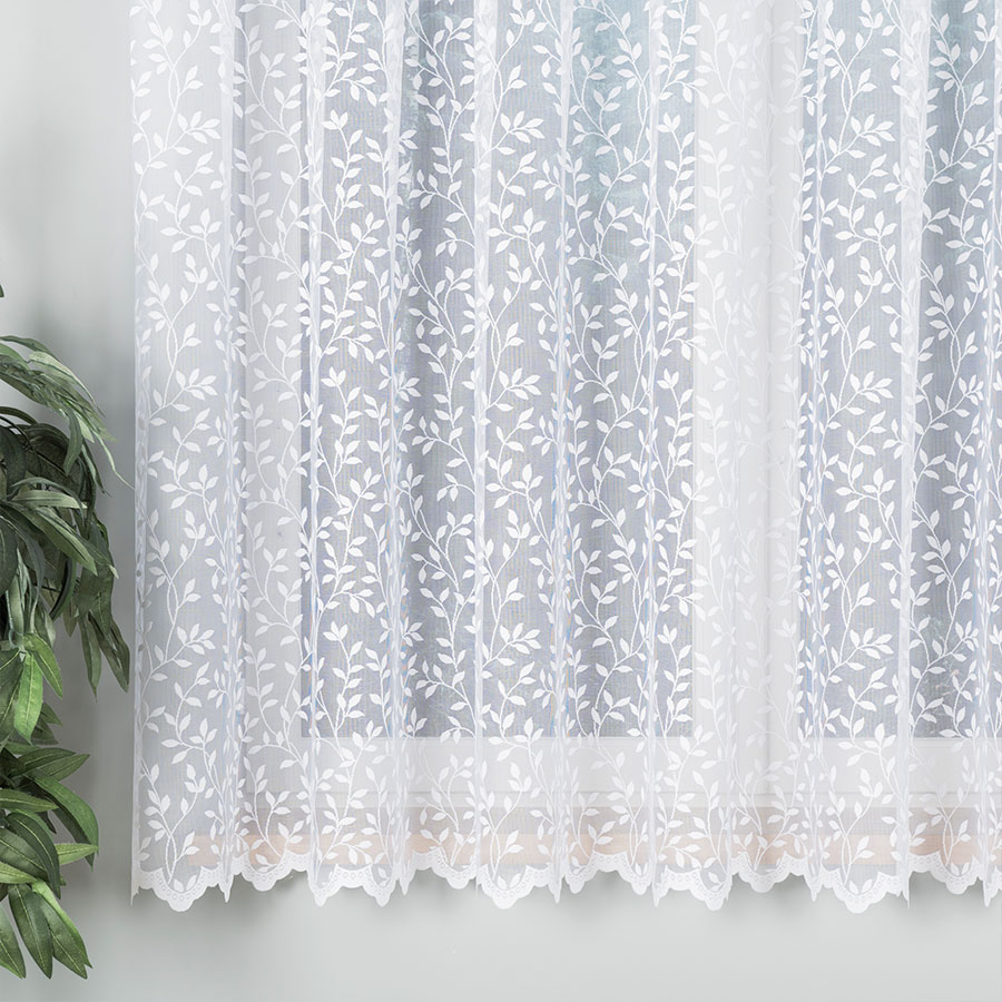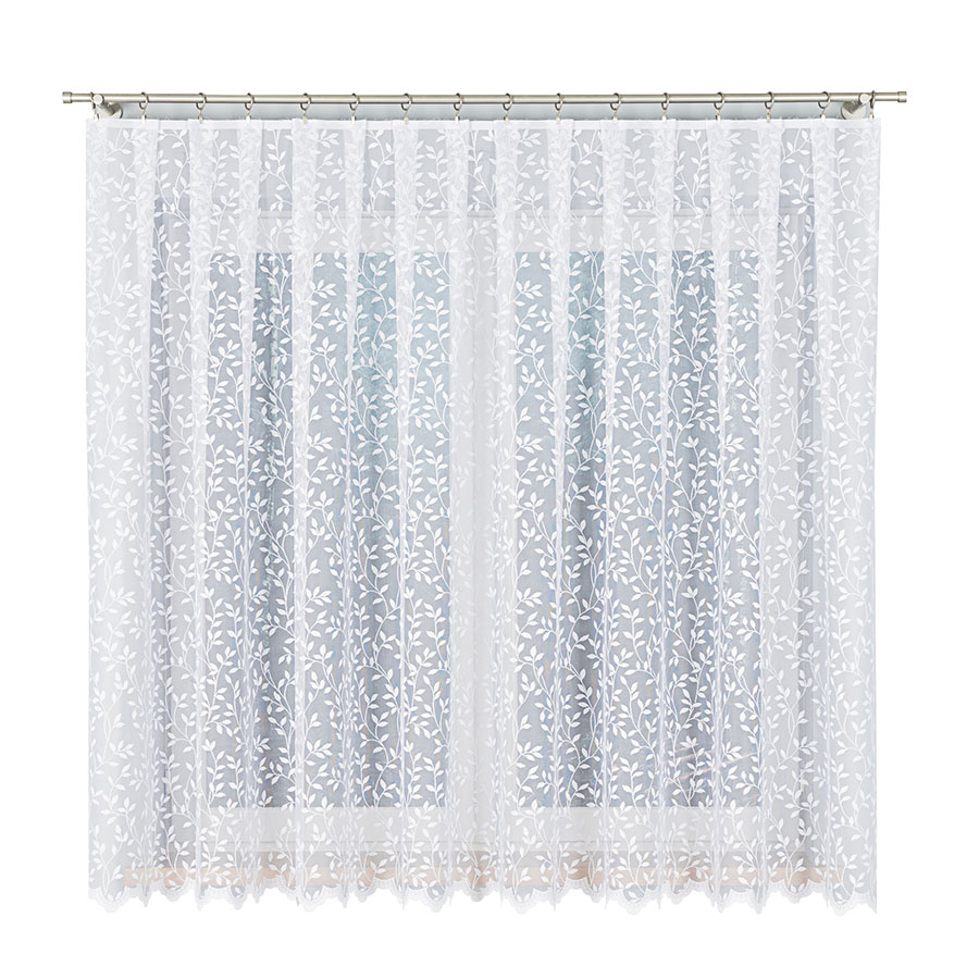 FIARAN ŻAKARD WZÓR BOTANICZNY GAŁĄZKI 170cm biała