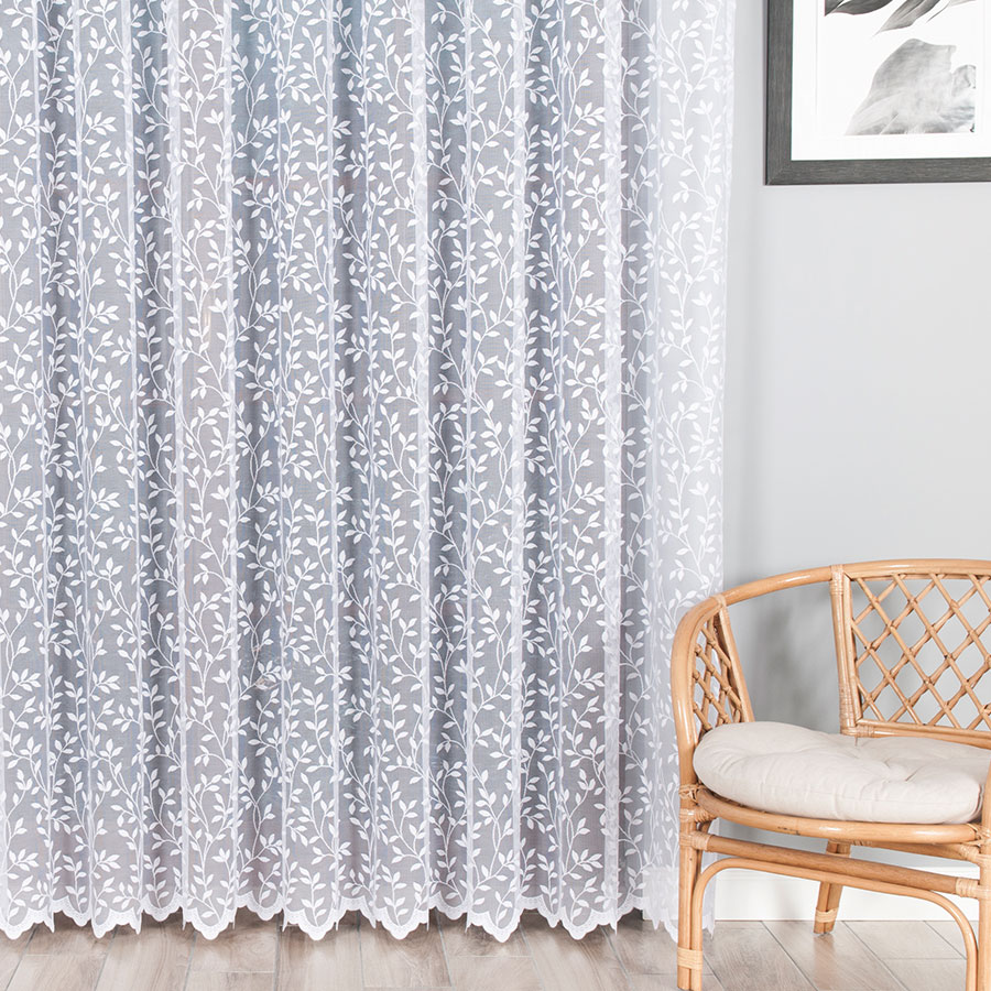 FIARAN ŻAKARD WZÓR BOTANICZNY GAŁĄZKI 220cm biała