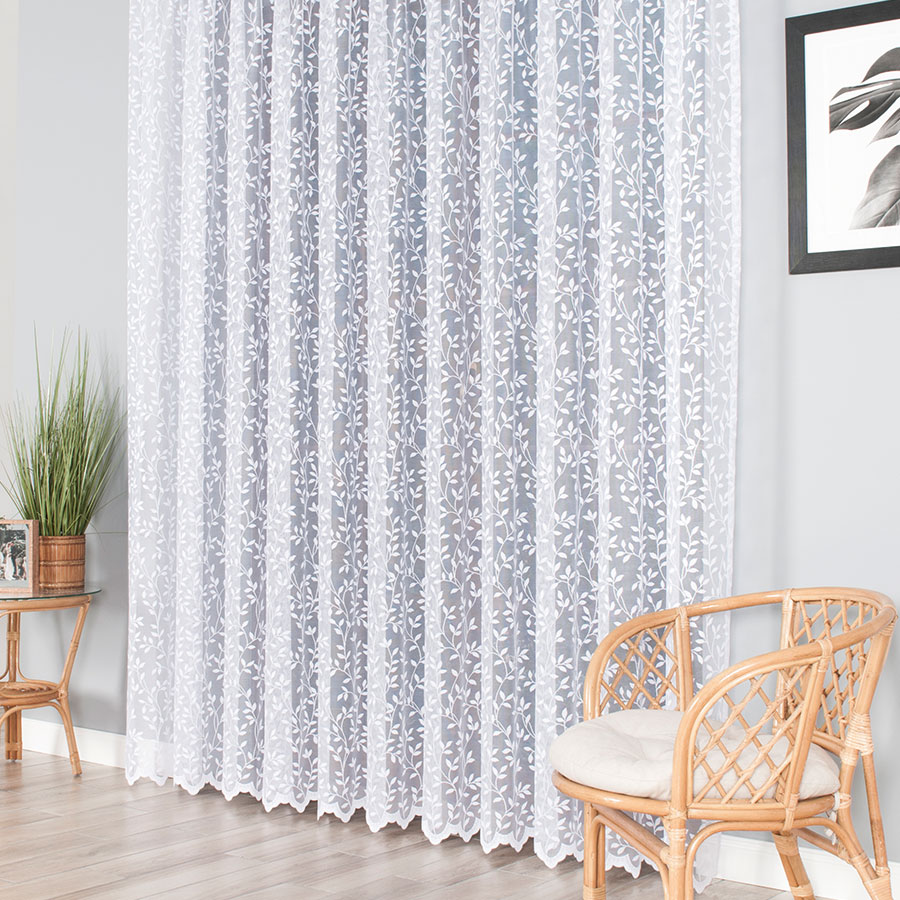 Firanka żakardowa z motywem roślinnym w liście to wyjątkowy element dekoracyjny, który wnosi do pomieszczenia świeżość i naturalny urok. Wykonana z wysokiej jakości żakardu, ta firanka zachwyca precyzyjnym wzorem liści, który dodaje przestrzeni subtelności i delikatności. Motyw roślinny nadaje wnętrzu przytulności i bliskości natury, tworząc harmonijną atmosferę. Doskonale komponuje się z różnymi stylami aranżacyjnymi, od klasycznych po nowoczesne, dodając im wyjątkowego uroku i elegancji. Zawieś tę piękną firankę w swoim domu, aby podkreślić jego naturalne piękno i stworzyć przyjemną, relaksującą przestrzeń.