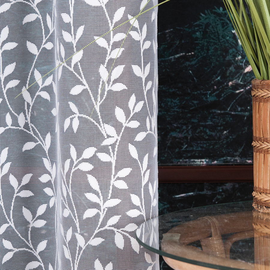 Firanka żakardowa z motywem roślinnym w liście to wyjątkowy element dekoracyjny, który wnosi do pomieszczenia świeżość i naturalny urok. Wykonana z wysokiej jakości żakardu, ta firanka zachwyca precyzyjnym wzorem liści, który dodaje przestrzeni subtelności i delikatności. Motyw roślinny nadaje wnętrzu przytulności i bliskości natury, tworząc harmonijną atmosferę. Doskonale komponuje się z różnymi stylami aranżacyjnymi, od klasycznych po nowoczesne, dodając im wyjątkowego uroku i elegancji. Zawieś tę piękną firankę w swoim domu, aby podkreślić jego naturalne piękno i stworzyć przyjemną, relaksującą przestrzeń.