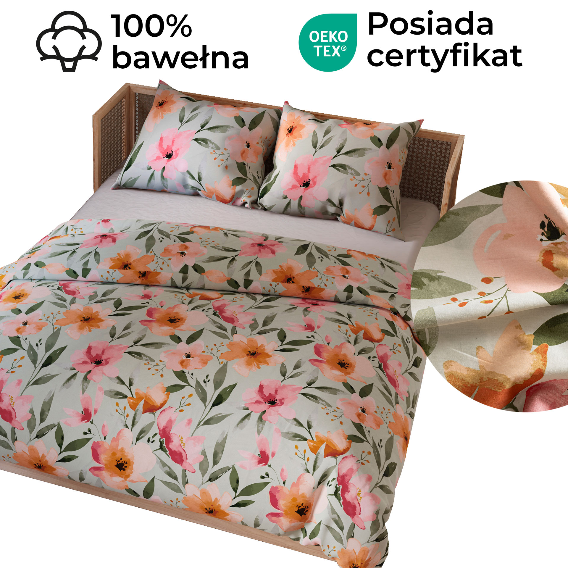 POŚCIEL BAWEŁNIANA 160x200cm KOMPLET POŚCIELI FLORALIS