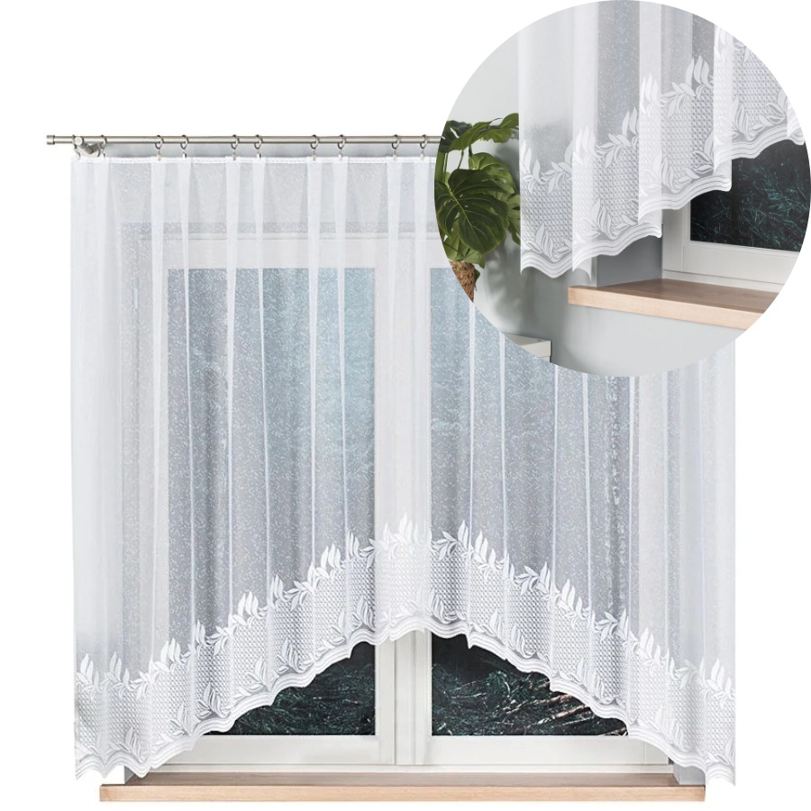 Firanka o niezwykle modnym wzorze z akcentem kwiatowym wyróżnia się na tle standardowych firan. Firanki żakardowe są najbardziej popularnym typem firan w naszym kraju, charakteryzują się wyjątkowo niską ceną oraz gamą niepowtarzalnych i licznych wzorów. Żakard jest tkaniną niezwykle mocną i trwałą dzięki czemu długo posłuży każdemu użytkownikowi. Nie wymaga specjalnego traktowania w czasie prania oraz prasowania, wystarczy wyprać w proszku lub płynie do białych tkanin i zawiesić na mokro. Klasyczny wzór firany pasuje do każdego pomieszczenia kuchni, sypialni, salonu czy jadalni. Firanka nie posiada taśmy marszczącej co ułatwia jej dowolne upięcie oraz ułożenie na każdym typie karnisza.