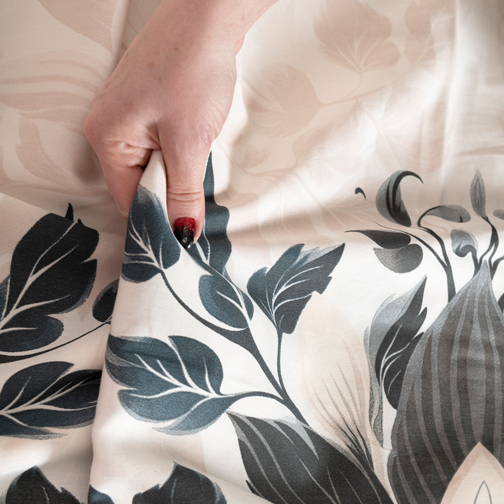 Satyna bawełniana to 100% naturalna bawełna o satynowym splocie, który zapewnia jedwabistą gładkość i subtelny połysk. Pościel jest oddychająca, dzięki czemu gwarantuje komfort cieplny przez cały rok – latem nie przegrzewa, a zimą przyjemnie otula.