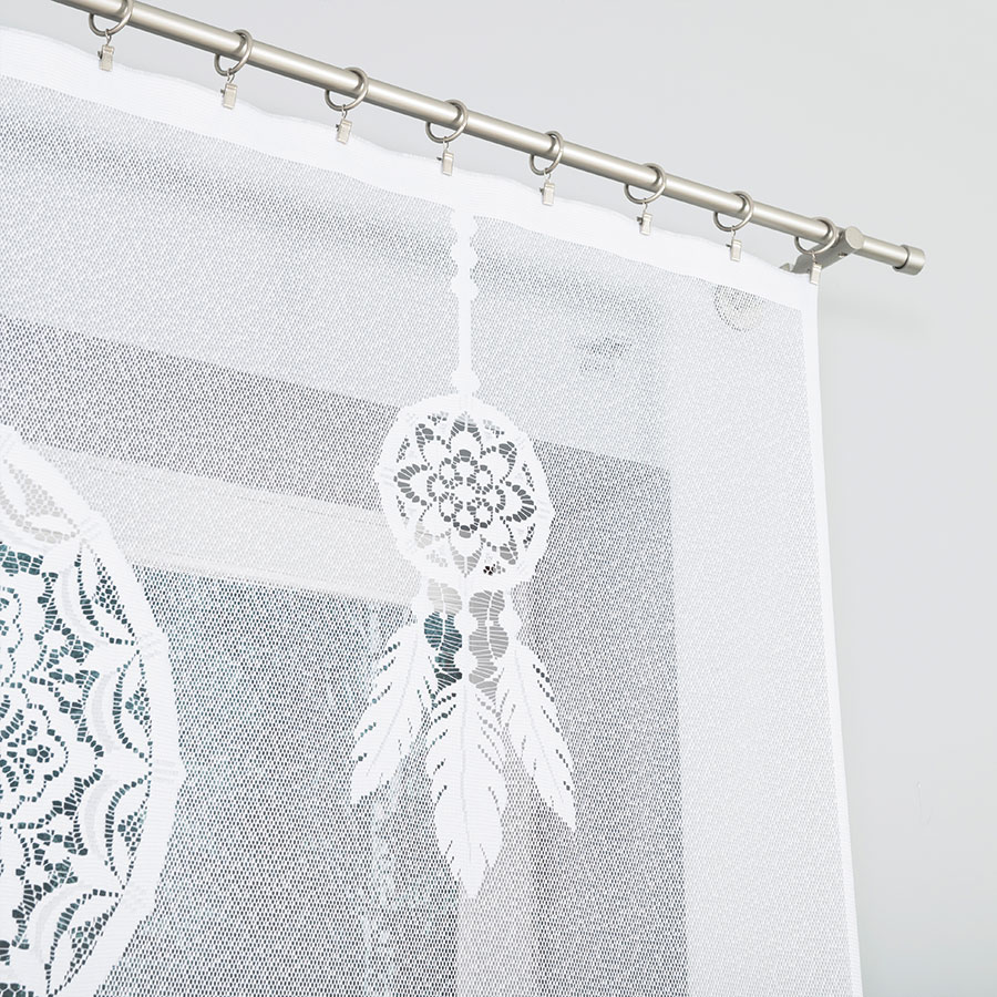 Elegancka i niepowtarzalna firanka panelowa. Firanki dostępne są wielu rozmiarach oraz wzorach co daje możliwość stworzenia wyjątkowej i oryginalnej aranżacji każdego pomieszczenia, idealnie pasują do kuchni, jadalni, jak i salonu. Mnogość dostępnych wymiarów pozwala dopasować rozmieszczenie poszczególnych firan w niemal każdym pomieszczeniu oraz oknie bez względu na jego wymiary, oraz rozkład.