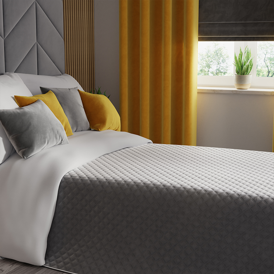 Narzuta dekoracyjna o pikowanym wzorze geometrycznym to doskonały dodatek, który doda elegancji i wyrafinowania każdemu wnętrzu. Wykonana techniką hot press zapewnia wysoką jakość wykonania oraz trwałość. Zastosowanie lamówki na bokach dodaje narzucie dodatkowego uroku i wykończenia. Front wykonany z miękkiej tkaniny Velvi zapewnia przyjemny w dotyku i luksusowy wygląd, podczas gdy spód z mikrofibry gwarantuje komfort i ciepło. Ta narzuta dekoracyjna to nie tylko praktyczny dodatek, ale także stylowy element wystroju wnętrza, który doskonale sprawdzi się zarówno na łóżku, jak i na kanapie.