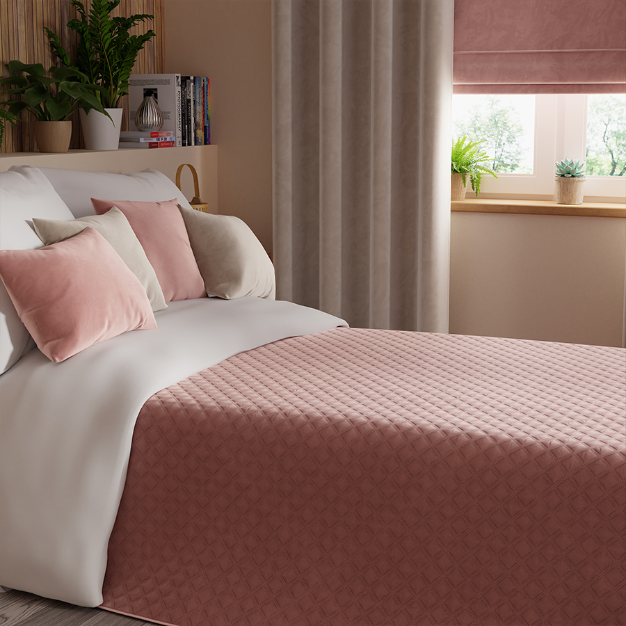 Narzuta dekoracyjna na łóżko, pled 170x210cm ciemny pudowy różowy