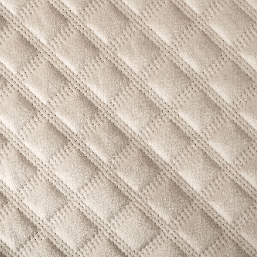 Narzuta dekoracyjna o pikowanym wzorze geometrycznym to doskonały dodatek, który doda elegancji i wyrafinowania każdemu wnętrzu. Wykonana techniką hot press zapewnia wysoką jakość wykonania oraz trwałość. Zastosowanie lamówki na bokach dodaje narzucie dodatkowego uroku i wykończenia. Front wykonany z miękkiej tkaniny Velvi zapewnia przyjemny w dotyku i luksusowy wygląd, podczas gdy spód z mikrofibry gwarantuje komfort i ciepło. Ta narzuta dekoracyjna to nie tylko praktyczny dodatek, ale także stylowy element wystroju wnętrza, który doskonale sprawdzi się zarówno na łóżku, jak i na kanapie.