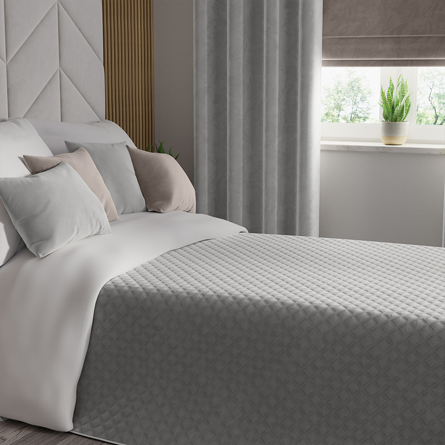 Narzuta dekoracyjna o pikowanym wzorze geometrycznym to doskonały dodatek, który doda elegancji i wyrafinowania każdemu wnętrzu. Wykonana techniką hot press zapewnia wysoką jakość wykonania oraz trwałość. Zastosowanie lamówki na bokach dodaje narzucie dodatkowego uroku i wykończenia. Front wykonany z miękkiej tkaniny Velvi zapewnia przyjemny w dotyku i luksusowy wygląd, podczas gdy spód z mikrofibry gwarantuje komfort i ciepło. Ta narzuta dekoracyjna to nie tylko praktyczny dodatek, ale także stylowy element wystroju wnętrza, który doskonale sprawdzi się zarówno na łóżku, jak i na kanapie.