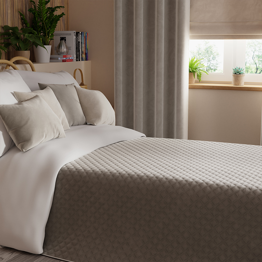 Narzuta dekoracyjna o pikowanym wzorze geometrycznym to doskonały dodatek, który doda elegancji i wyrafinowania każdemu wnętrzu. Wykonana techniką hot press zapewnia wysoką jakość wykonania oraz trwałość. Zastosowanie lamówki na bokach dodaje narzucie dodatkowego uroku i wykończenia. Front wykonany z miękkiej tkaniny Velvi zapewnia przyjemny w dotyku i luksusowy wygląd, podczas gdy spód z mikrofibry gwarantuje komfort i ciepło. Ta narzuta dekoracyjna to nie tylko praktyczny dodatek, ale także stylowy element wystroju wnętrza, który doskonale sprawdzi się zarówno na łóżku, jak i na kanapie.