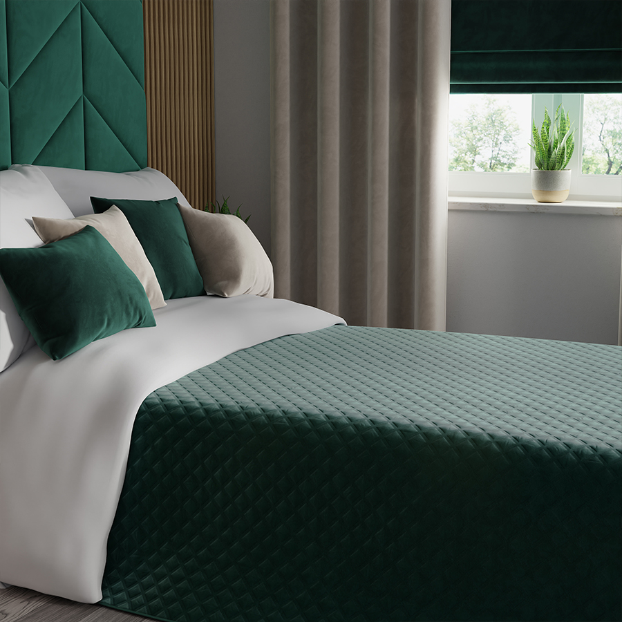 Narzuta dekoracyjna na łóżko, pled 220x240cm szmaragdowy zielony