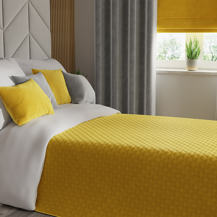 Narzuta dekoracyjna na łóżko, pled 220x240cm żółty