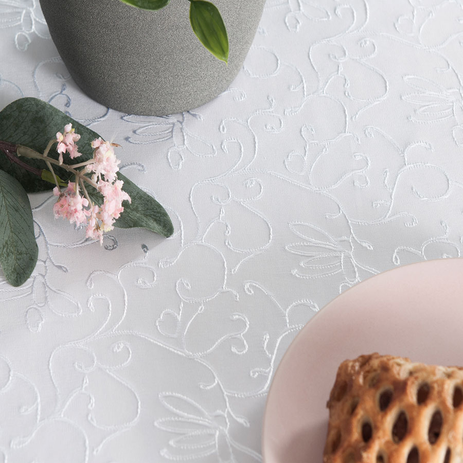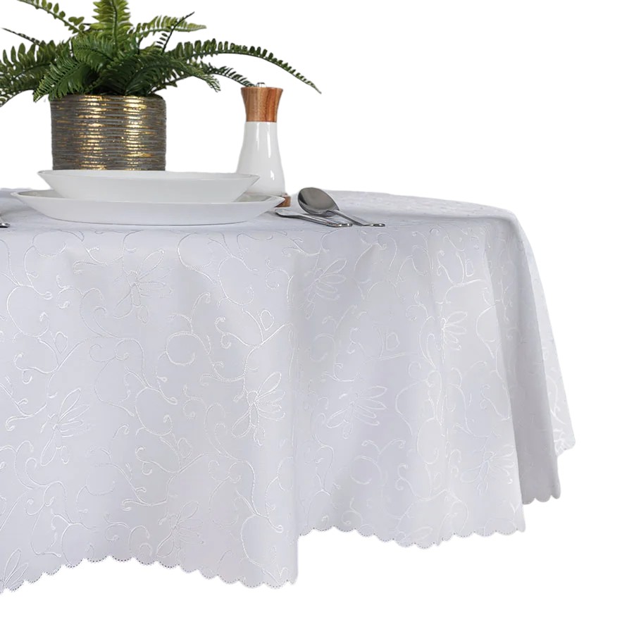Obrus wodoodporny okrągły Flora 160cm biały