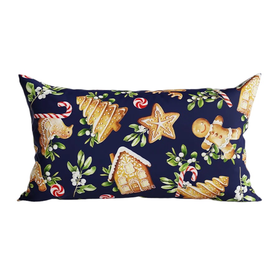PODUSZKA ŚWIĄTECZNA PIERNIKI MICROFIBRA 30x50cm granat