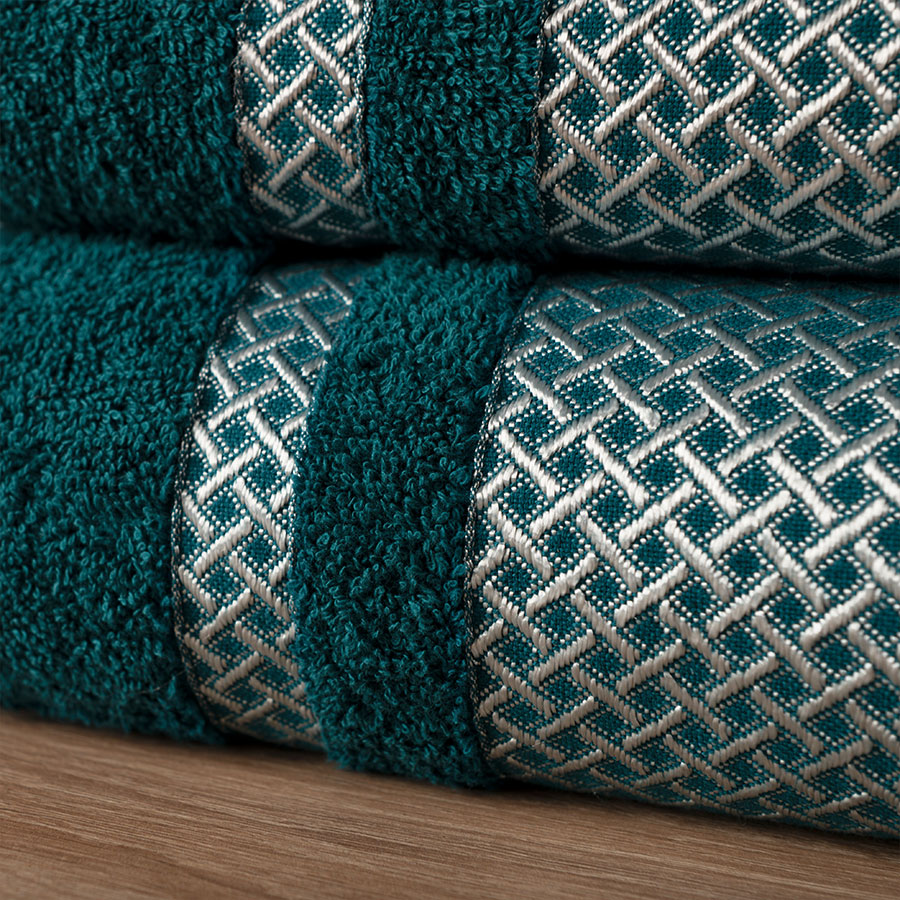 Ręcznik bawełniany Lionel ciemno turkusowy ze srebrną bordiurą 50×90