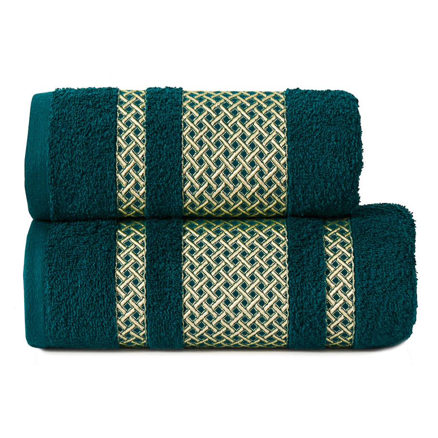 Ręcznik bawełniany Lionel ciemno turkusowy ze złotą bordiurą 50×90