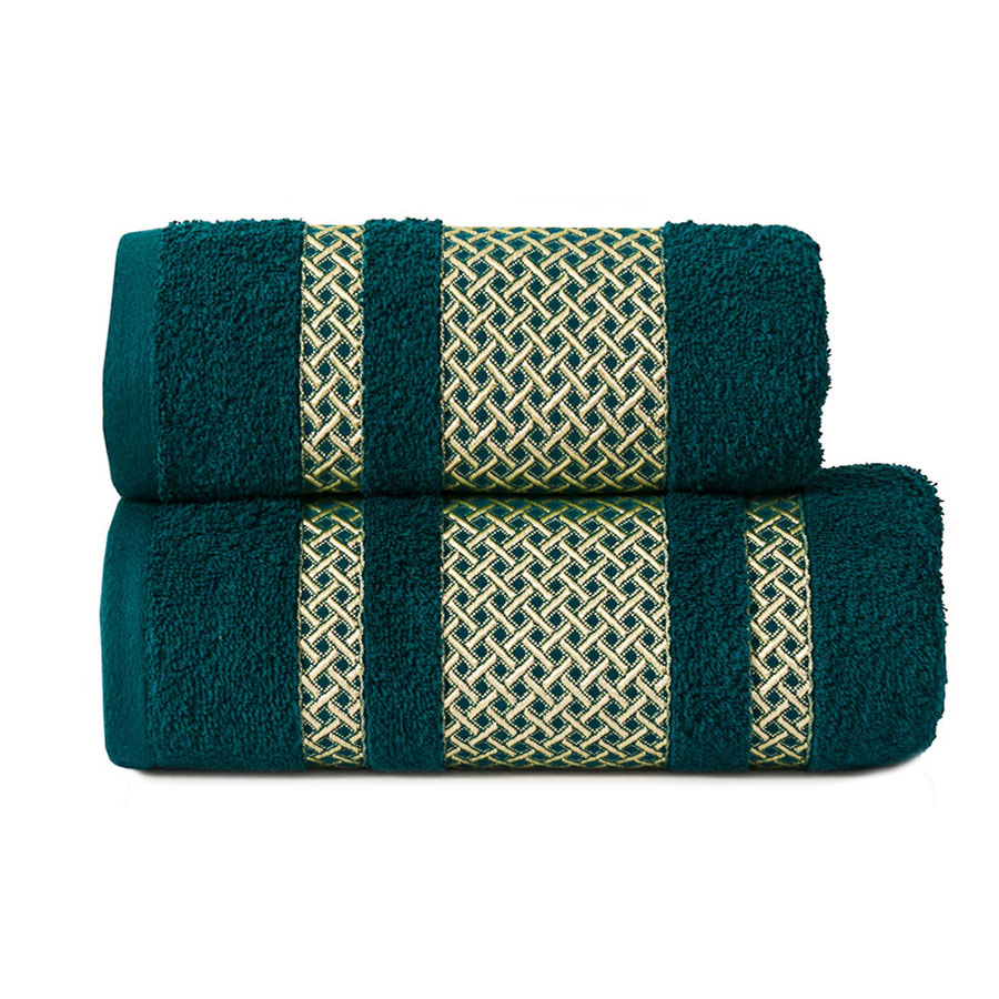 Ręcznik bawełniany Lionel ciemno turkusowy ze złotą bordiurą 70×140