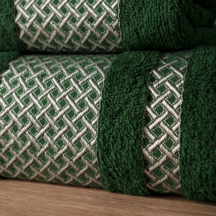 Ręcznik bawełniany Lionel ciemno zielony ze srebrną bordiurą 50×90