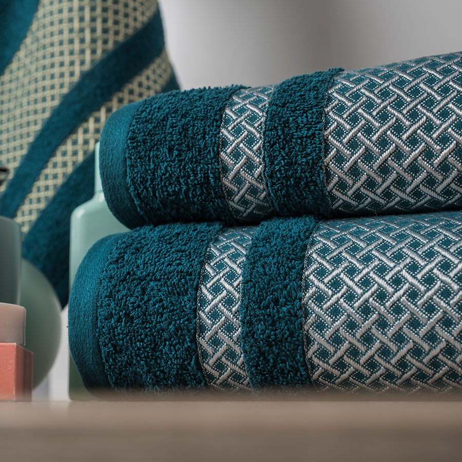Ręcznik bawełniany Lionel ciemny turkus ze srebrną bordiurą 70×140