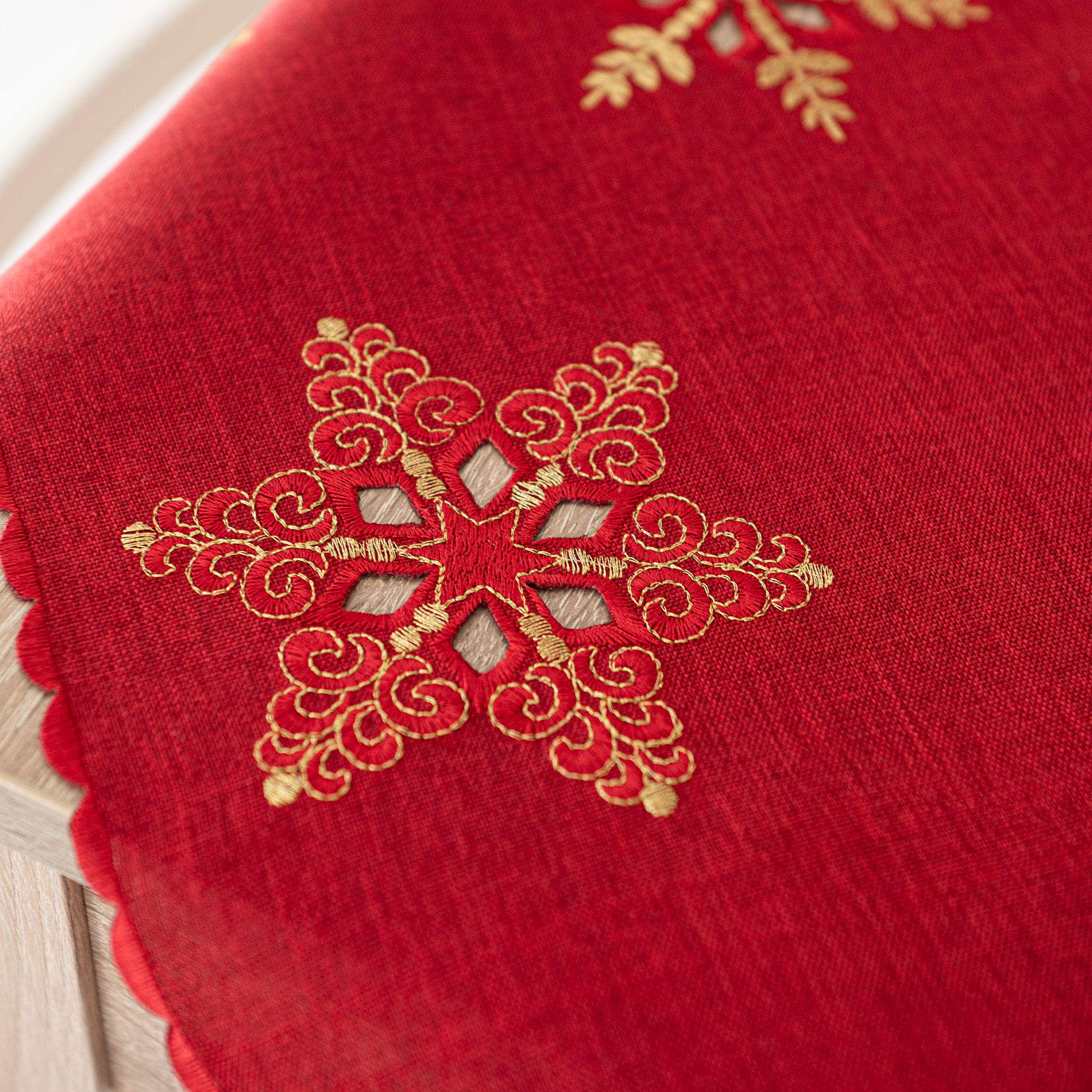 SERWETA ŚWIĄTECZNA Z HAFTEM ŚNIEŻYNKI 85x85cm czerwona